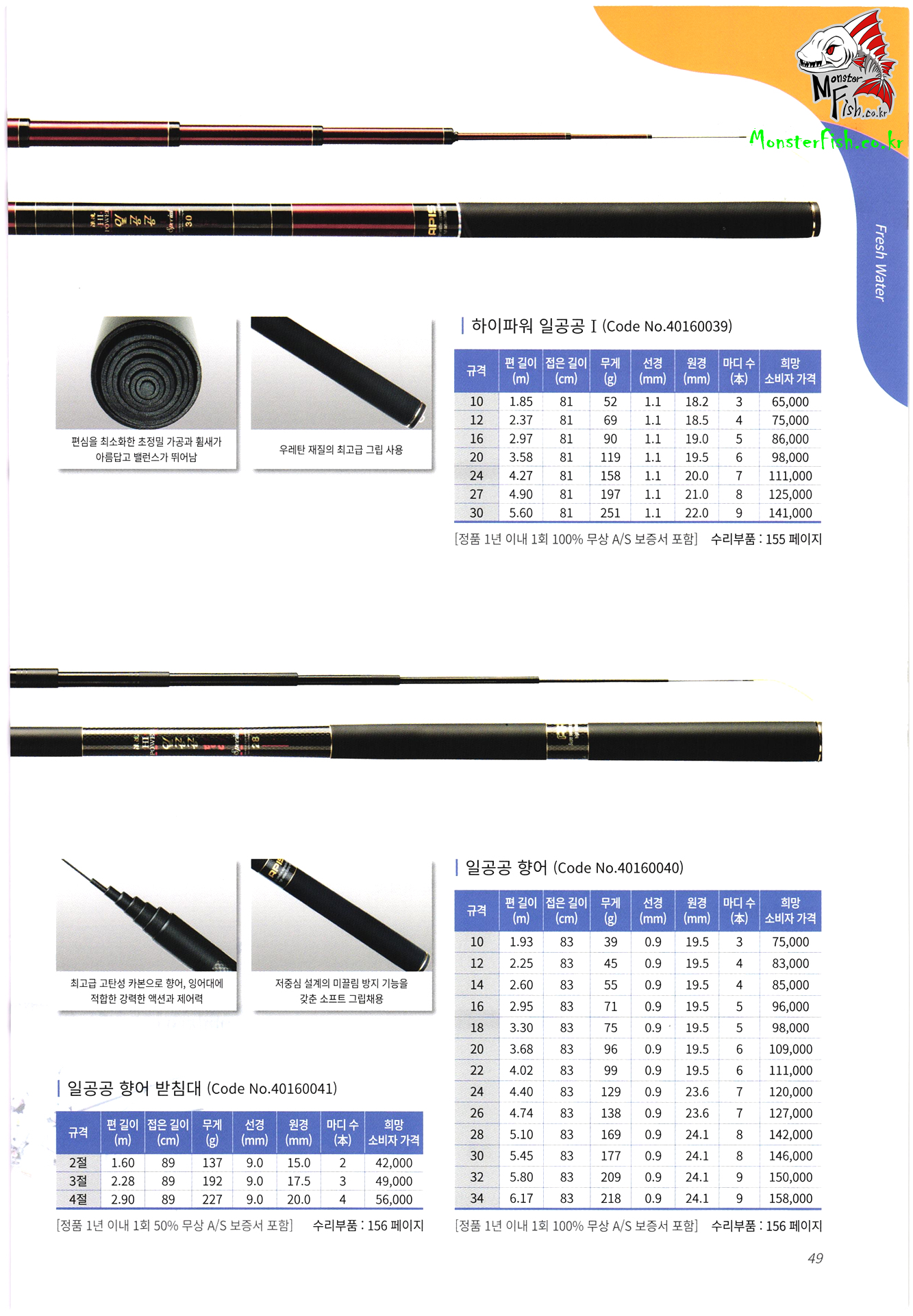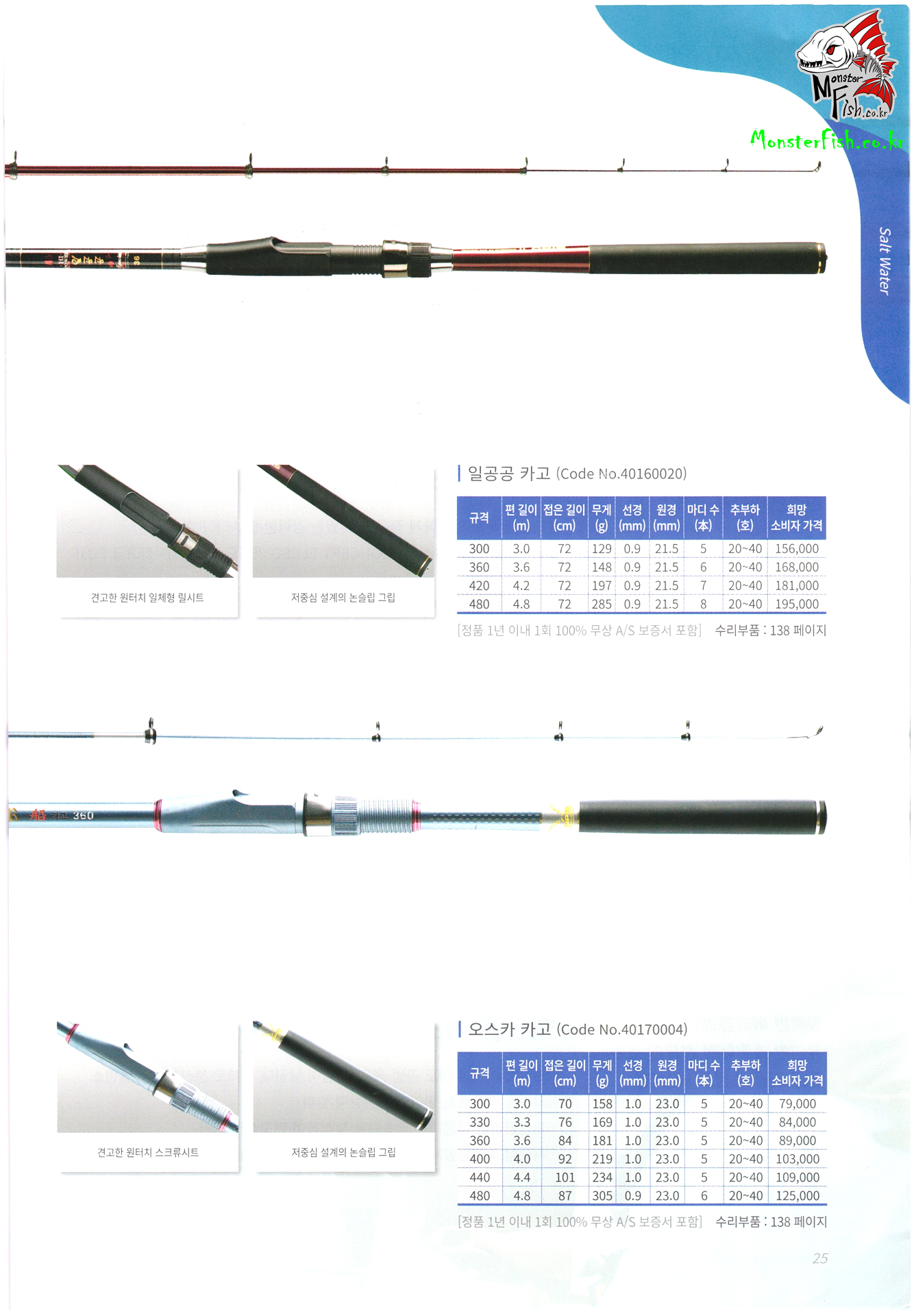 낚시용품 가격표, 수리부품 가격표,