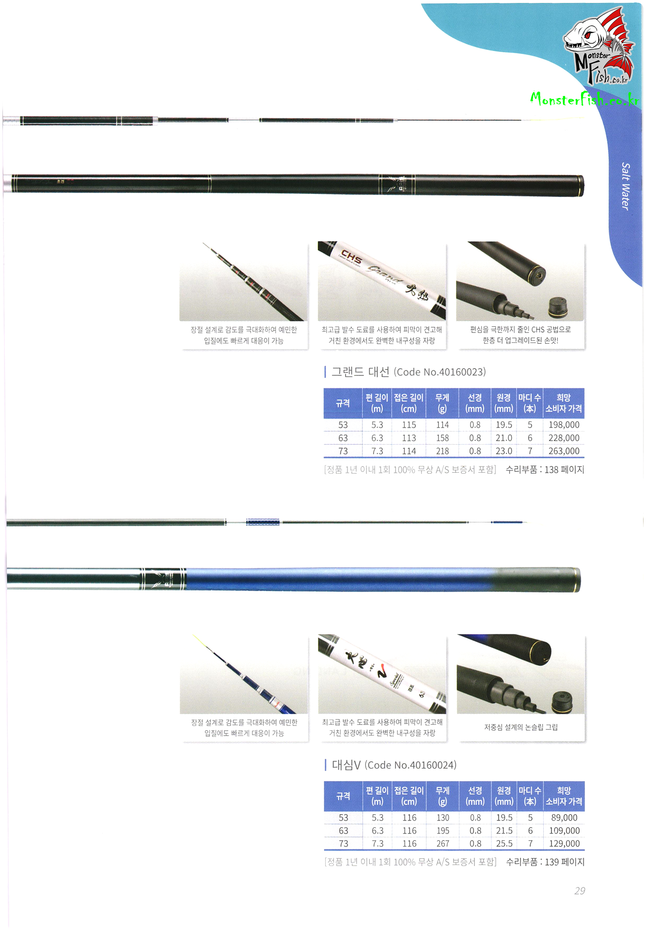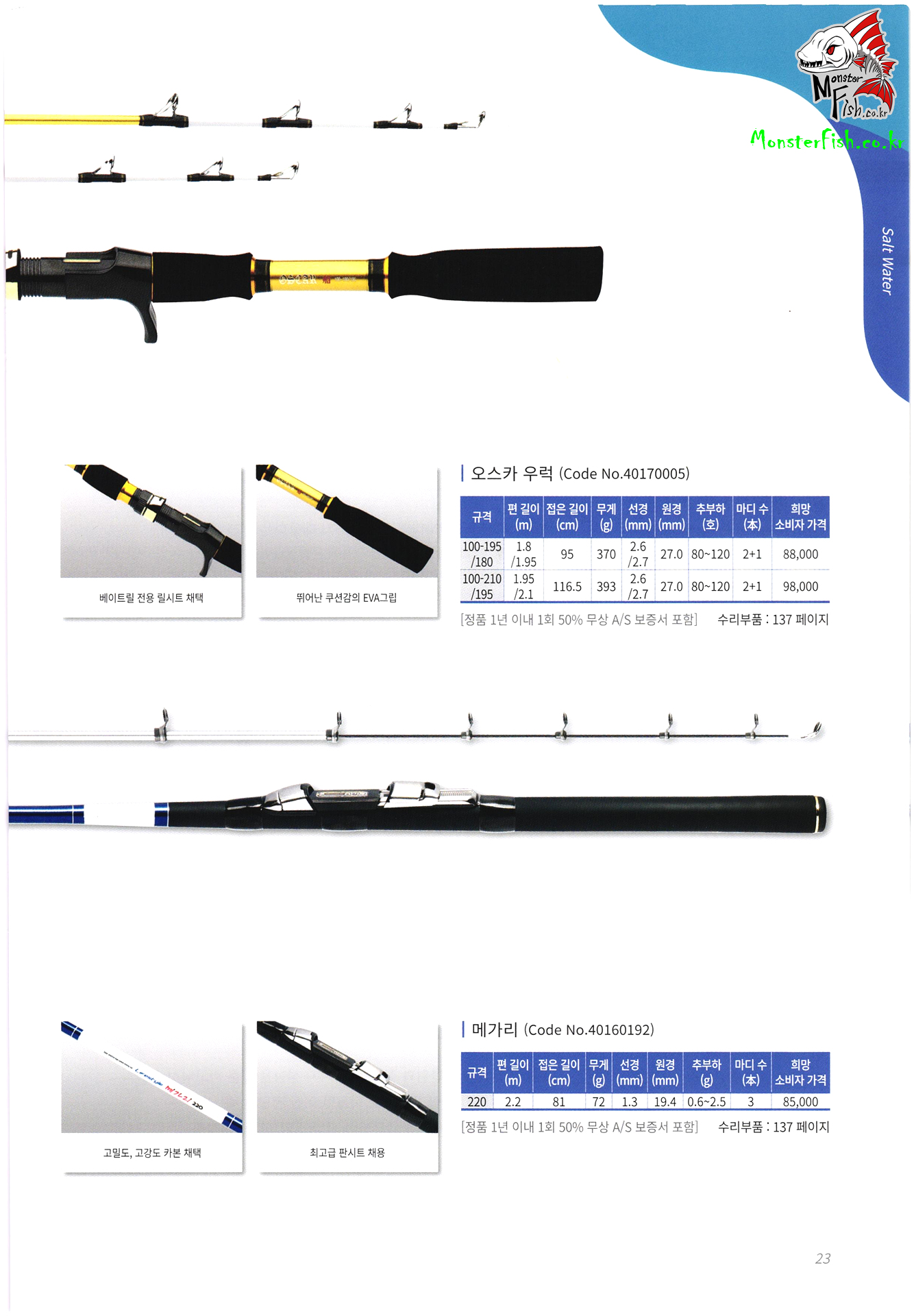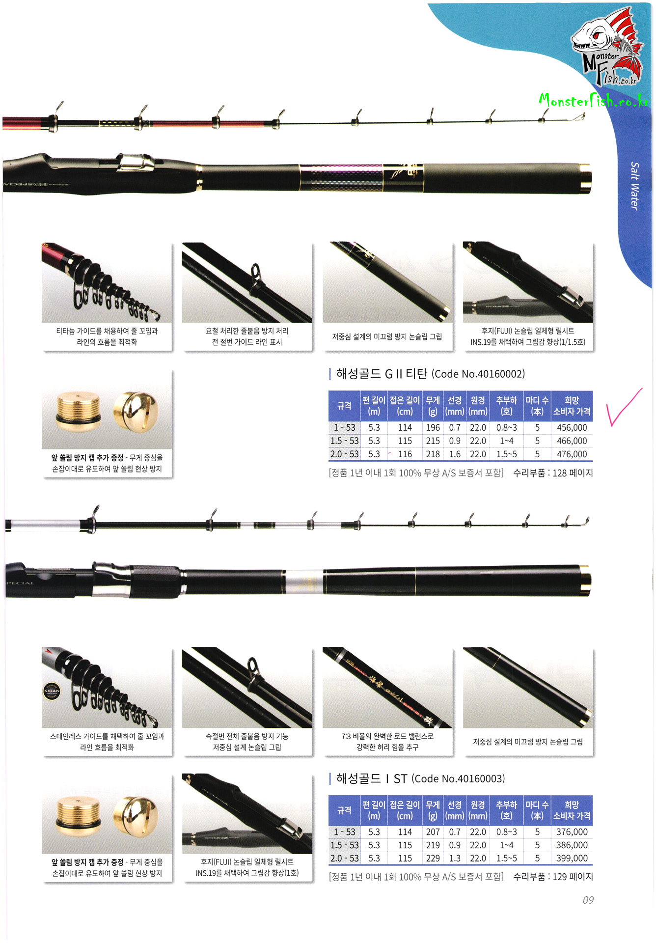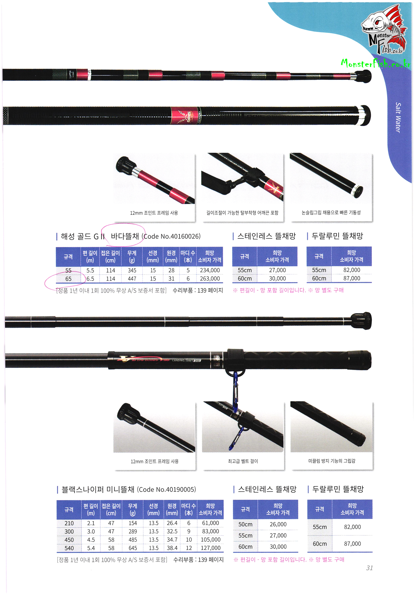 갯바위 릴 낚시대, 방어 부시리 전용 낚싯대, 원투 낚시대, 선상 낚싯대, 돌돔 낚시대, 바다 민장대, 바다 뜰채,