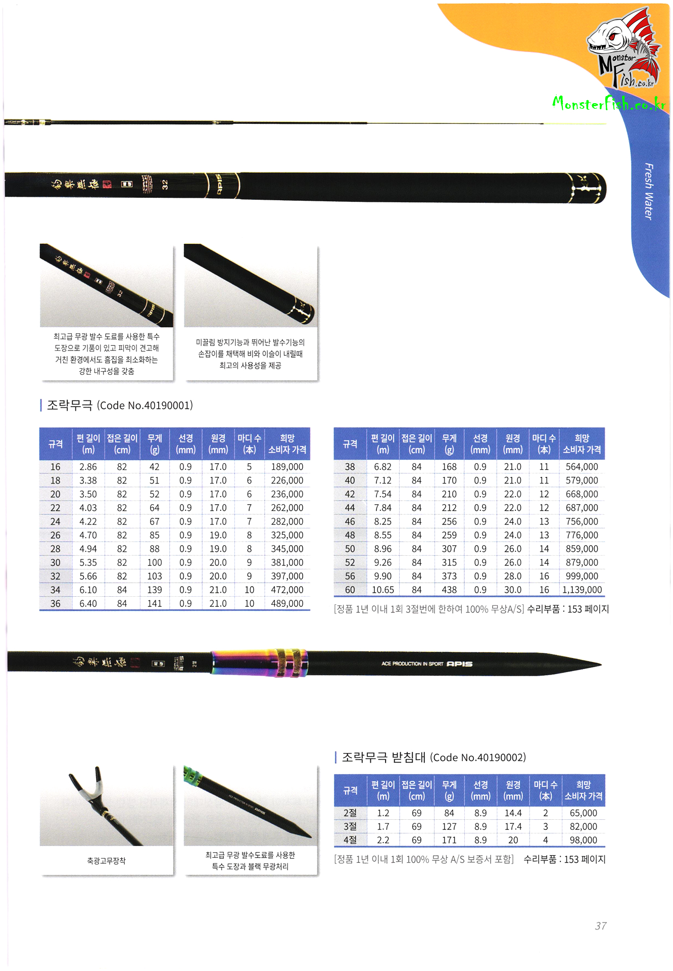 APIS. 아피스 낚시용품 및 수리부품 가격표 : 1