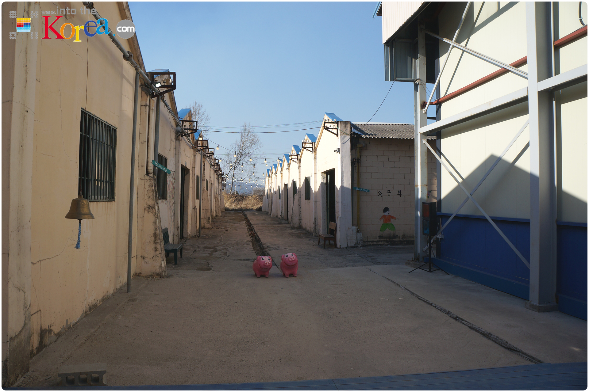 창고들이 2열로 주루룩 서있는 구조이고...지붕은 슬레이트 구조로 대부분 되어 있고, 하얀색과 파란색의 대비와 군데군데 있는 빨간 전화부스가 잘 어울린다.