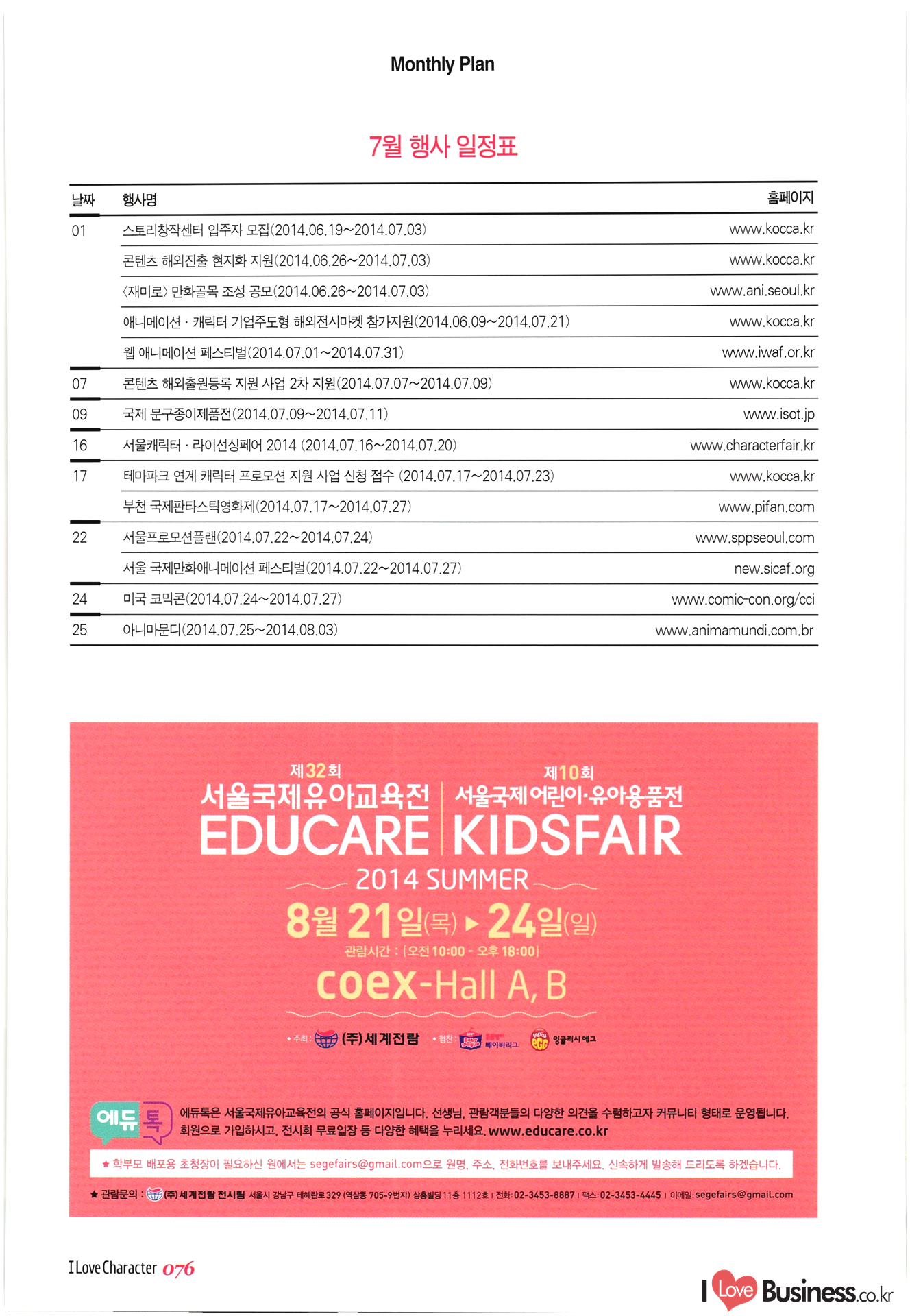 076 7월 행사 일정표 078 뉴스 084 신상품 소식 088 애니메이션 시청 순위