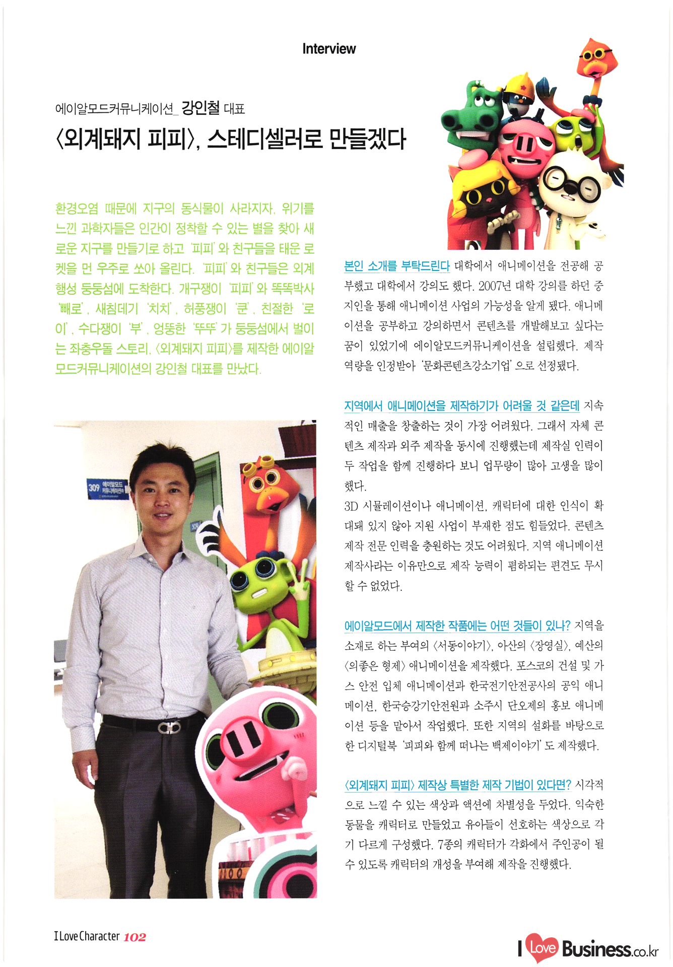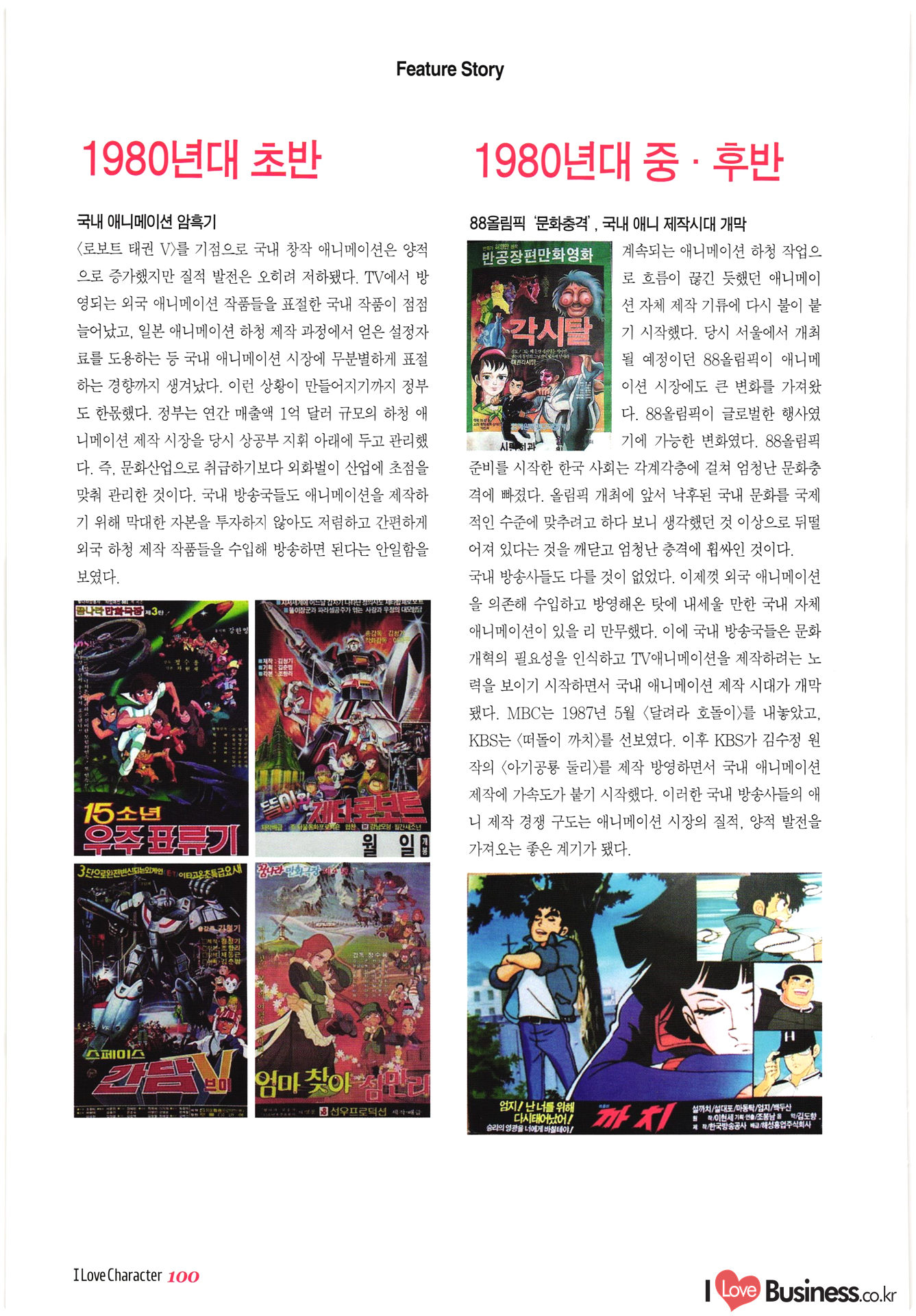 Interview - Special Report · Focus · Column 1098 한국 애니메이션 시대별 변천사 102 에이알모드커뮤니케이션 강인철 대표 | 〈외계돼지 피피), 스테디셀러로 만들겠다. 104 투바앤 박용하 실장