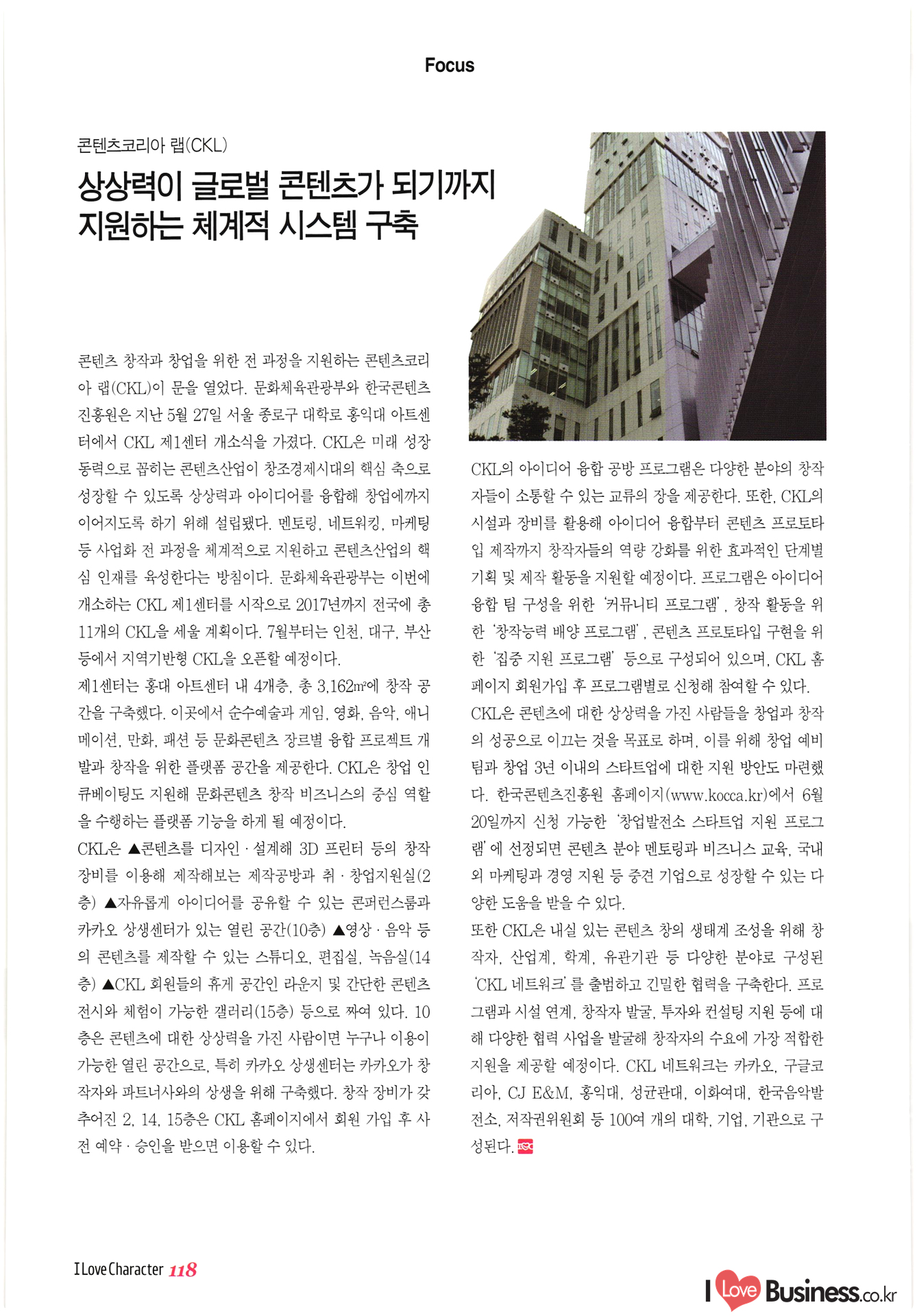 전통문양 · 캐릭터 디자인 공모전' 수상작 최종 선정 114 애니메이션 · 캐릭터 제작 지원 사업 살펴보기 118 콘텐츠코리아 랩(CKL)