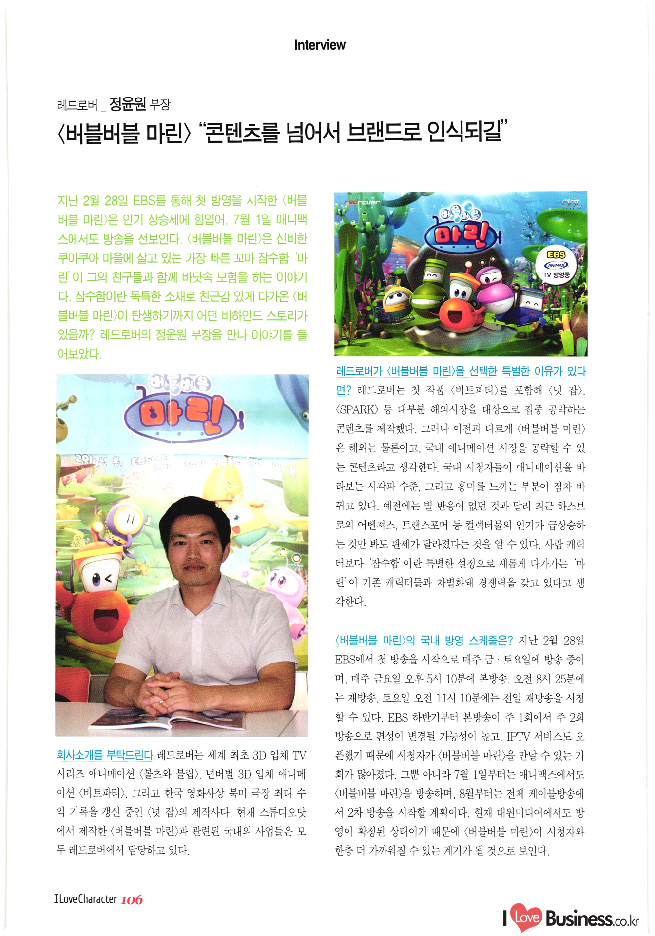 Cover Story 퍼니플럭스 엔터테인먼트 출동! 슈퍼윙스) 092 세계 어린이에게 선물 전해주는 출동! 슈퍼윙스〉, 비행 준비 완료!! 096 문화 다양성과 변신 비행기 캐릭터로 국내외 방송과 비즈니스를 섭렵하겠다!