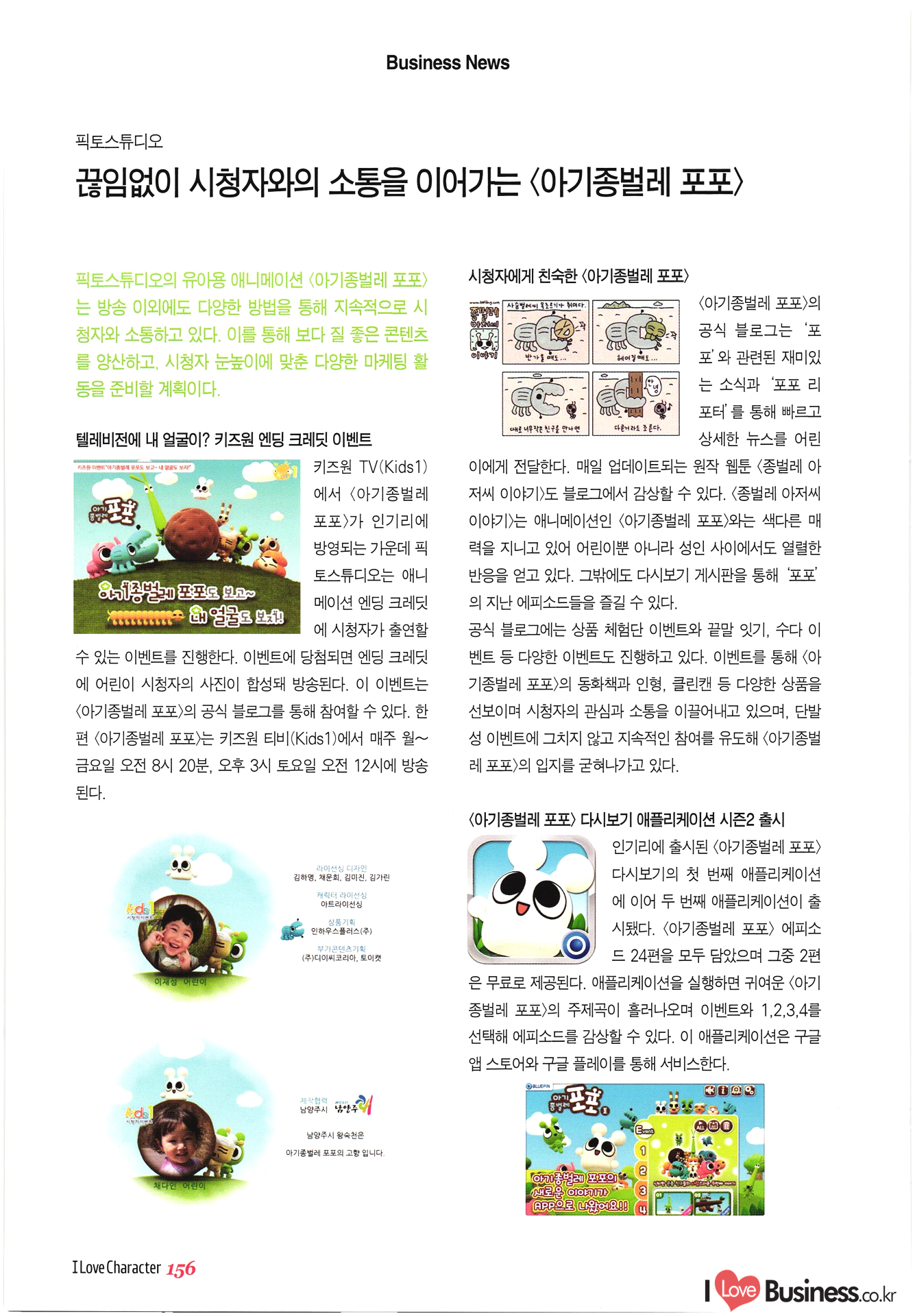 News 146 부즈클럽 캠핑 간 <캐니멀 & 향이 있는 캔디크러쉬) 148 투바앤 라바와 함께하는 여름방학 150 디피에스 두리둥실 뭉게공항), 다양한 플랫폼 사업 진행 152 시너지미디어 원더볼즈) 교육과 재미를 동시에 잡는다!! 154 아트피큐 제주 항공우주박물관에 간 꼬마해녀 몽니) 156 픽토스튜디오, 끊임없이 시청자와의 소통을 이어가는 아기종벌레 포포) 158 로이비쥬얼 중국서 캐릭터 한류 이끄는 로보카 폴리〉 160 오로라월드 '유후점핑클럽 야탑점 OPEN 162 손오공 〈헬로카봇〉, 대형 뮤지컬 공연기획사 하쿠나마타타' 와 손잡다 164 제이엠애니메이션 시청자와 소통하는 제이엠애니메이션 166 SMC 무민〉, 내가 제일 잘나가!! 168 레드로버 버블버블 마린)의 계절이 온다! 170 쏘울크리에이티브 〈티니와일드 수학놀이, 방영 전부터 반응 '후끈' ... 172 아이코닉스 베이징 '뽀로로 파크 1호점, 성공적인 론칭! 174 아이엔피코리아 · 일렉트릭서커스_ 남아 캐릭터 시장의 새로운 전설, 지파이터스 176 크레이지버드스튜디오 뽀잉〉과 〈에일리언 몽키스〉, 캐릭터 페어에서 만나요! 177 NHC미디어 날개 돋친 〈어리 이야기) 상품화 사업 178 C&H 힐링의 아이콘 카피바라상), 꾸준히 콘셉트 업데이트 179 아트라이선싱 모바일 메신저 돈톡 캐릭터 사업 진행