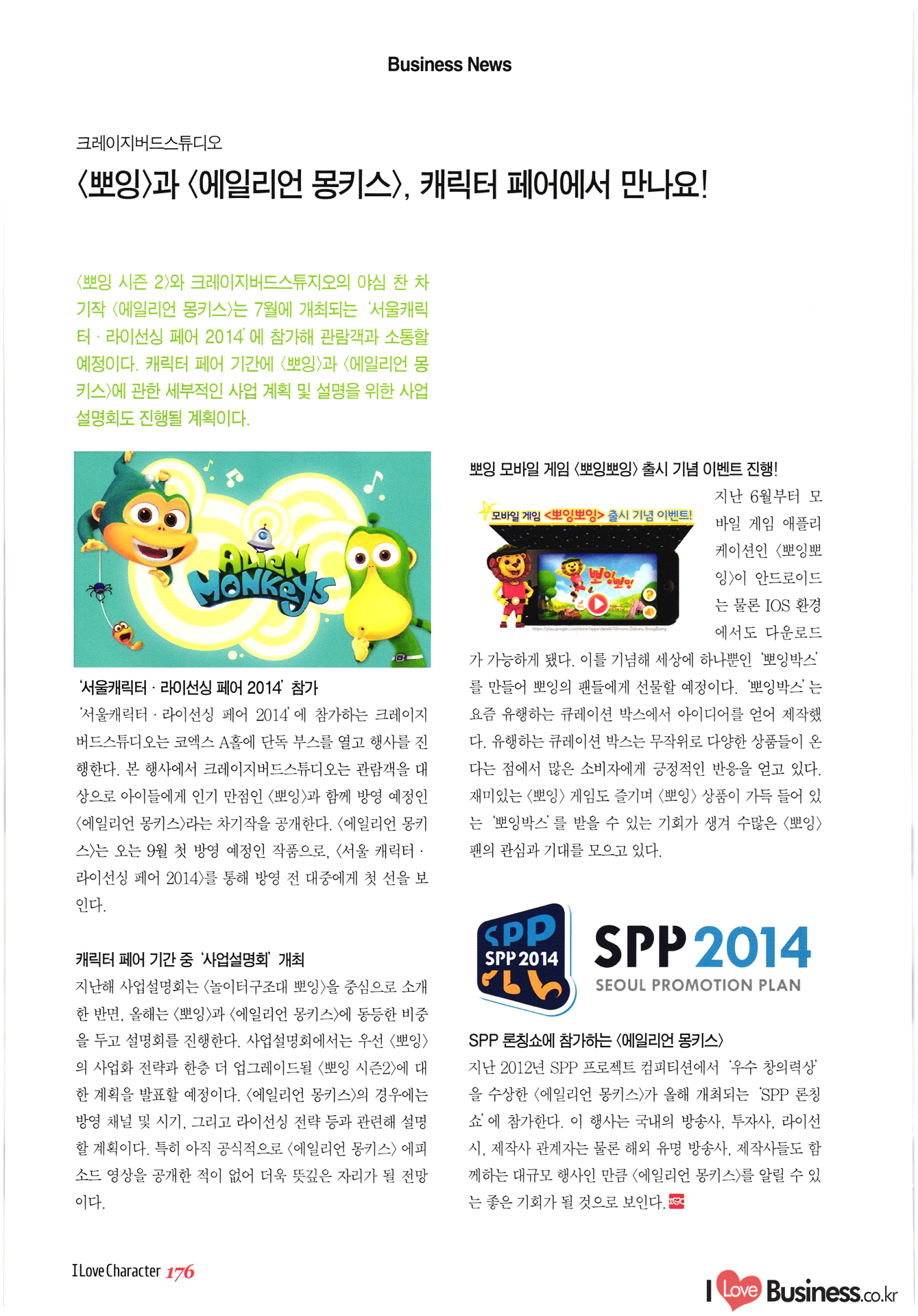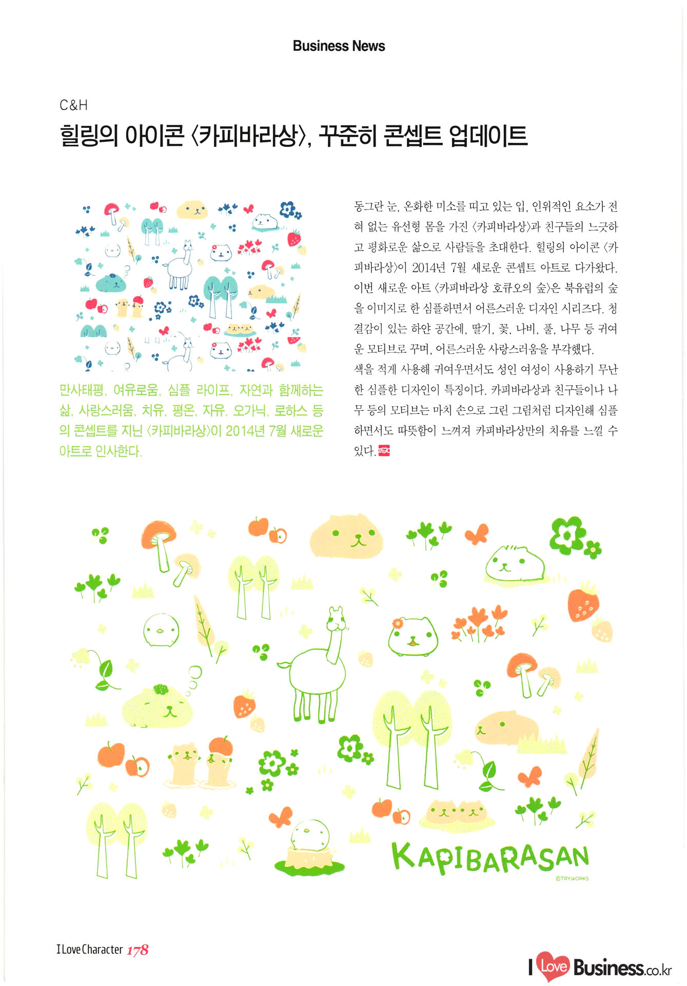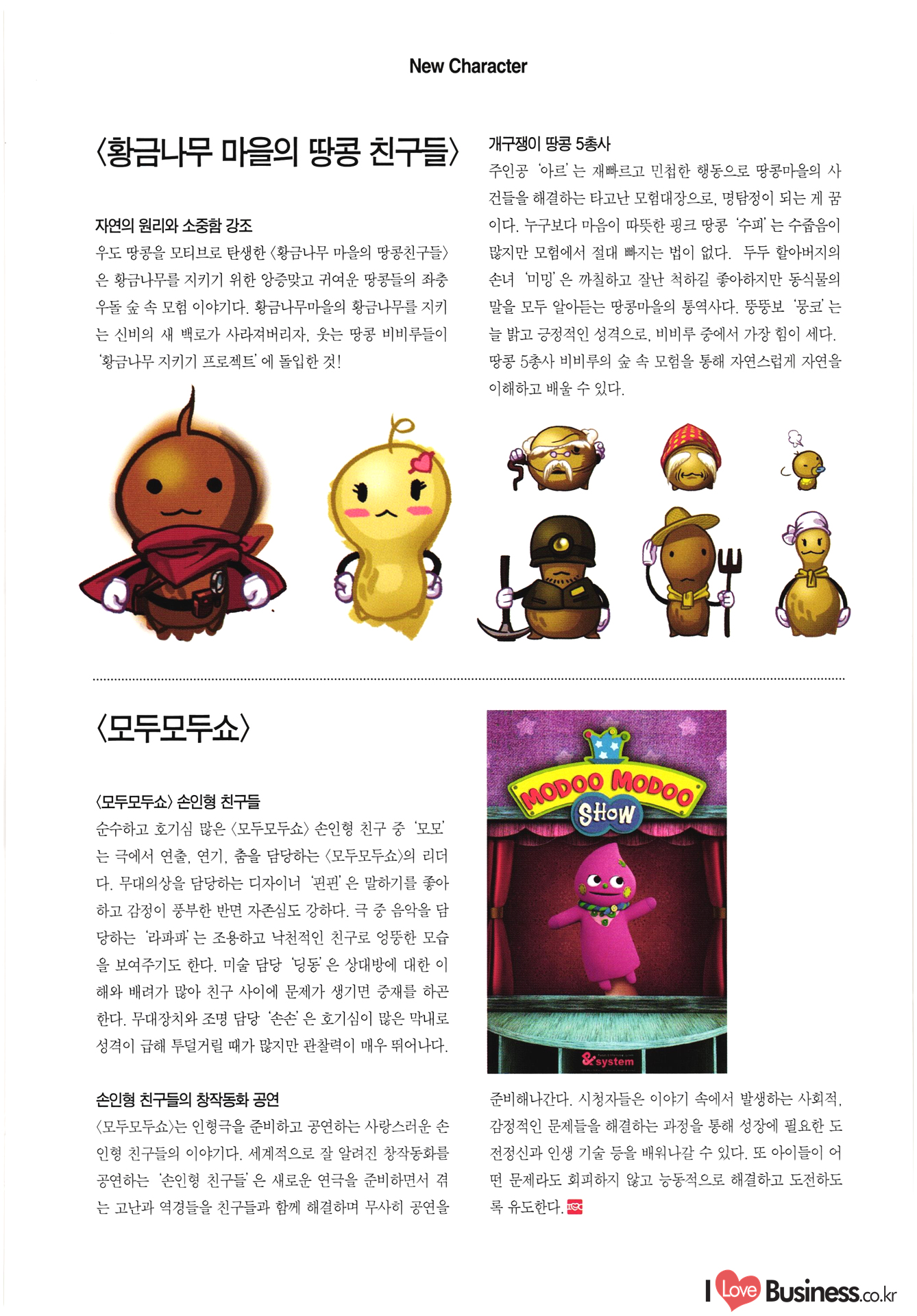 News 146 부즈클럽 캠핑 간 <캐니멀 & 향이 있는 캔디크러쉬) 148 투바앤 라바와 함께하는 여름방학 150 디피에스 두리둥실 뭉게공항), 다양한 플랫폼 사업 진행 152 시너지미디어 원더볼즈) 교육과 재미를 동시에 잡는다!! 154 아트피큐 제주 항공우주박물관에 간 꼬마해녀 몽니) 156 픽토스튜디오, 끊임없이 시청자와의 소통을 이어가는 아기종벌레 포포) 158 로이비쥬얼 중국서 캐릭터 한류 이끄는 로보카 폴리〉 160 오로라월드 '유후점핑클럽 야탑점 OPEN 162 손오공 〈헬로카봇〉, 대형 뮤지컬 공연기획사 하쿠나마타타' 와 손잡다 164 제이엠애니메이션 시청자와 소통하는 제이엠애니메이션 166 SMC 무민〉, 내가 제일 잘나가!! 168 레드로버 버블버블 마린)의 계절이 온다! 170 쏘울크리에이티브 〈티니와일드 수학놀이, 방영 전부터 반응 '후끈' ... 172 아이코닉스 베이징 '뽀로로 파크 1호점, 성공적인 론칭! 174 아이엔피코리아 · 일렉트릭서커스_ 남아 캐릭터 시장의 새로운 전설, 지파이터스 176 크레이지버드스튜디오 뽀잉〉과 〈에일리언 몽키스〉, 캐릭터 페어에서 만나요! 177 NHC미디어 날개 돋친 〈어리 이야기) 상품화 사업 178 C&H 힐링의 아이콘 카피바라상), 꾸준히 콘셉트 업데이트 179 아트라이선싱 모바일 메신저 돈톡 캐릭터 사업 진행