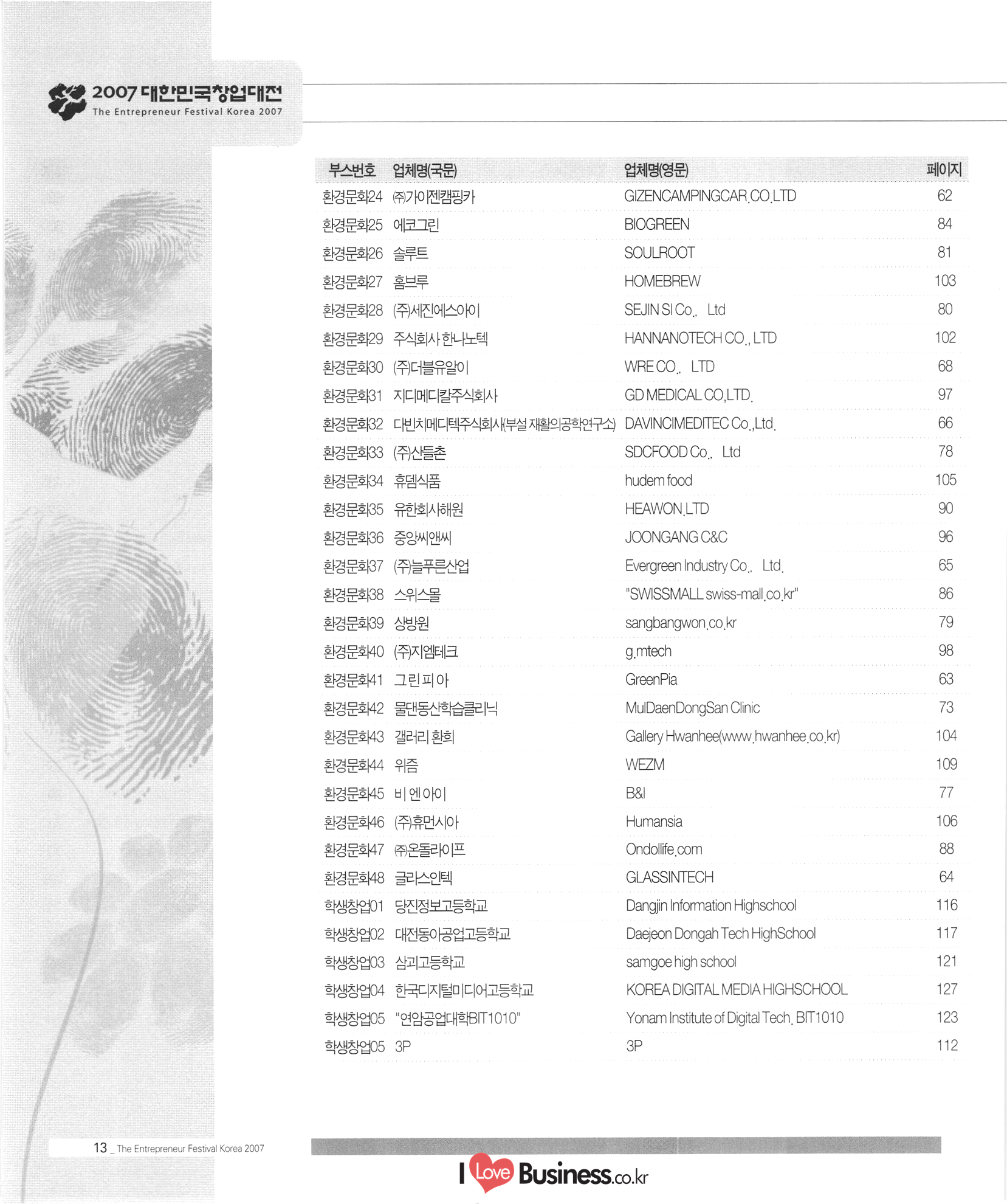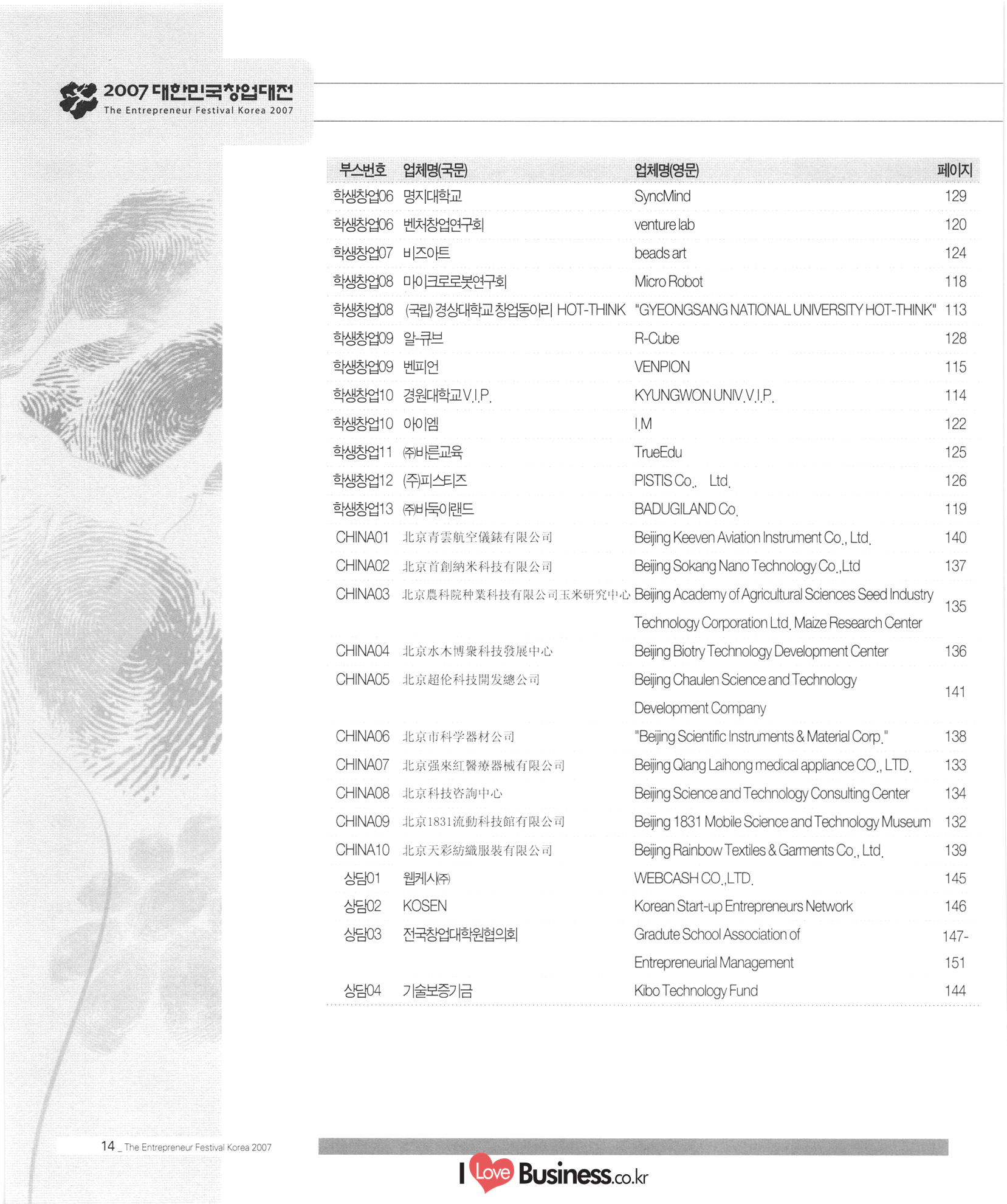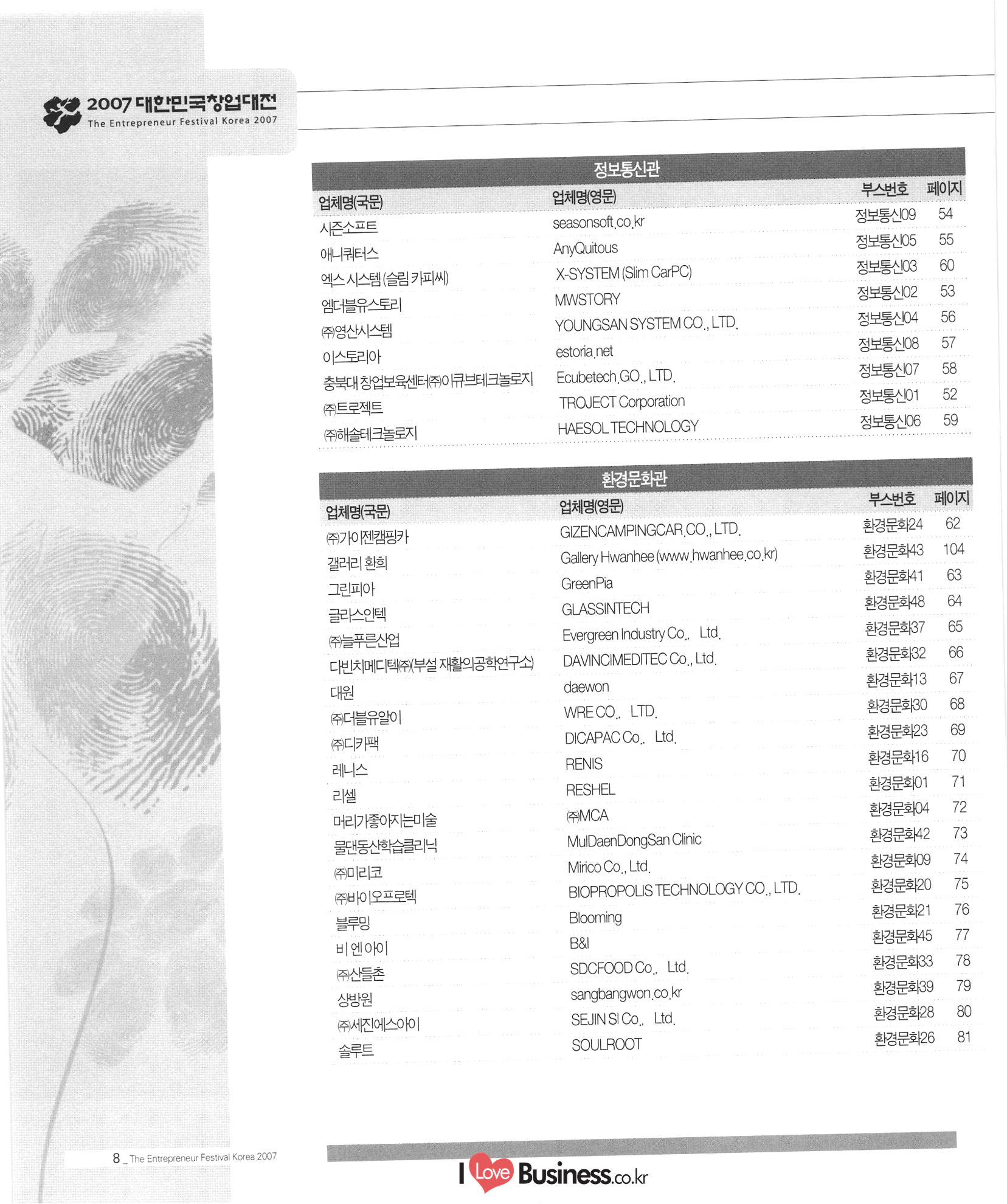 | 2007 대한민국창업대전 출품업체리스트 : 2 (0) | 2022.03.11 |