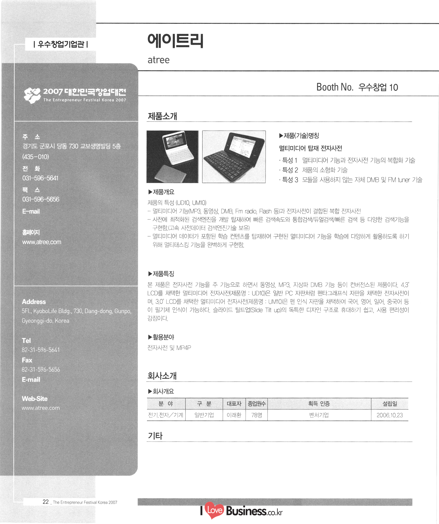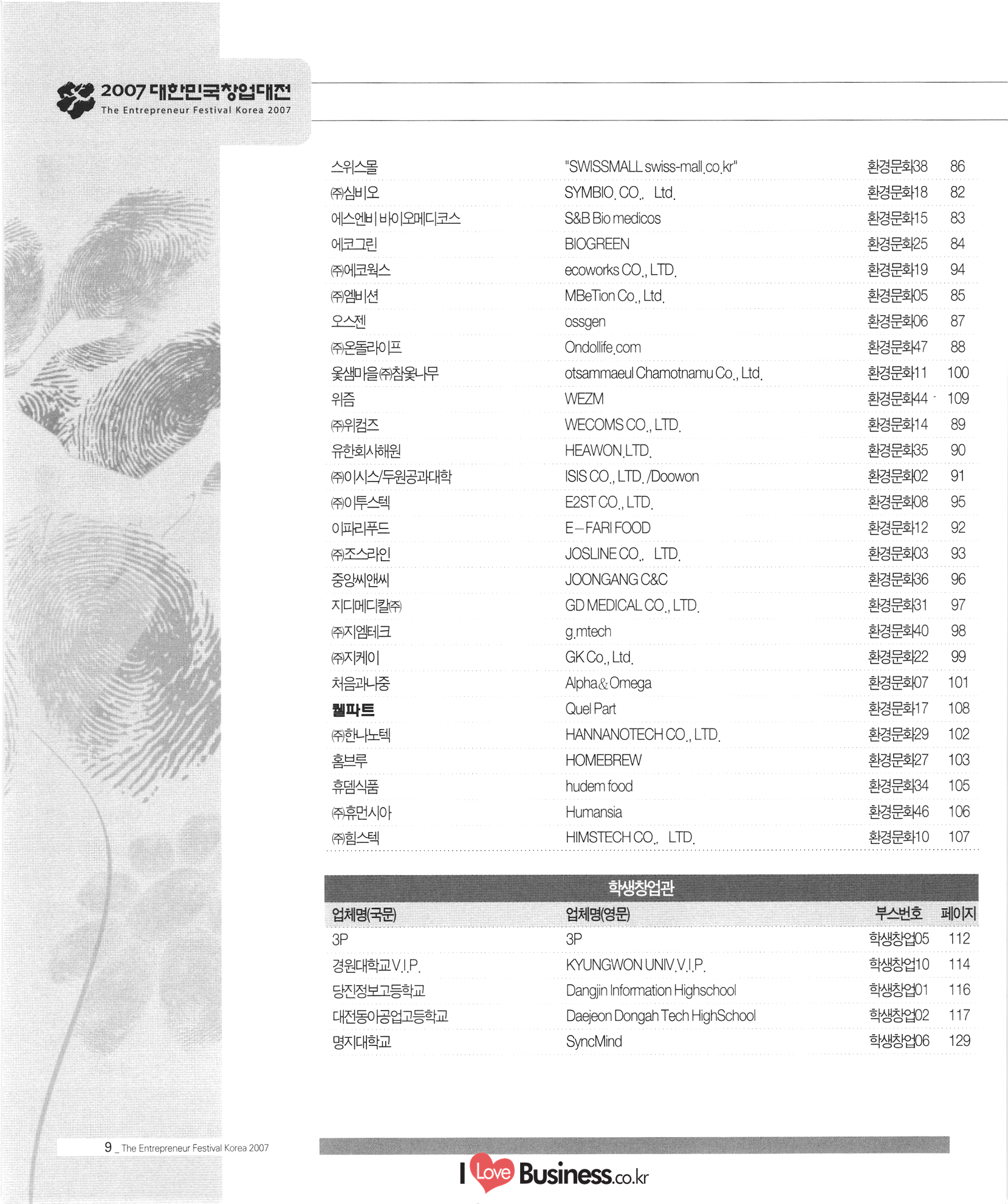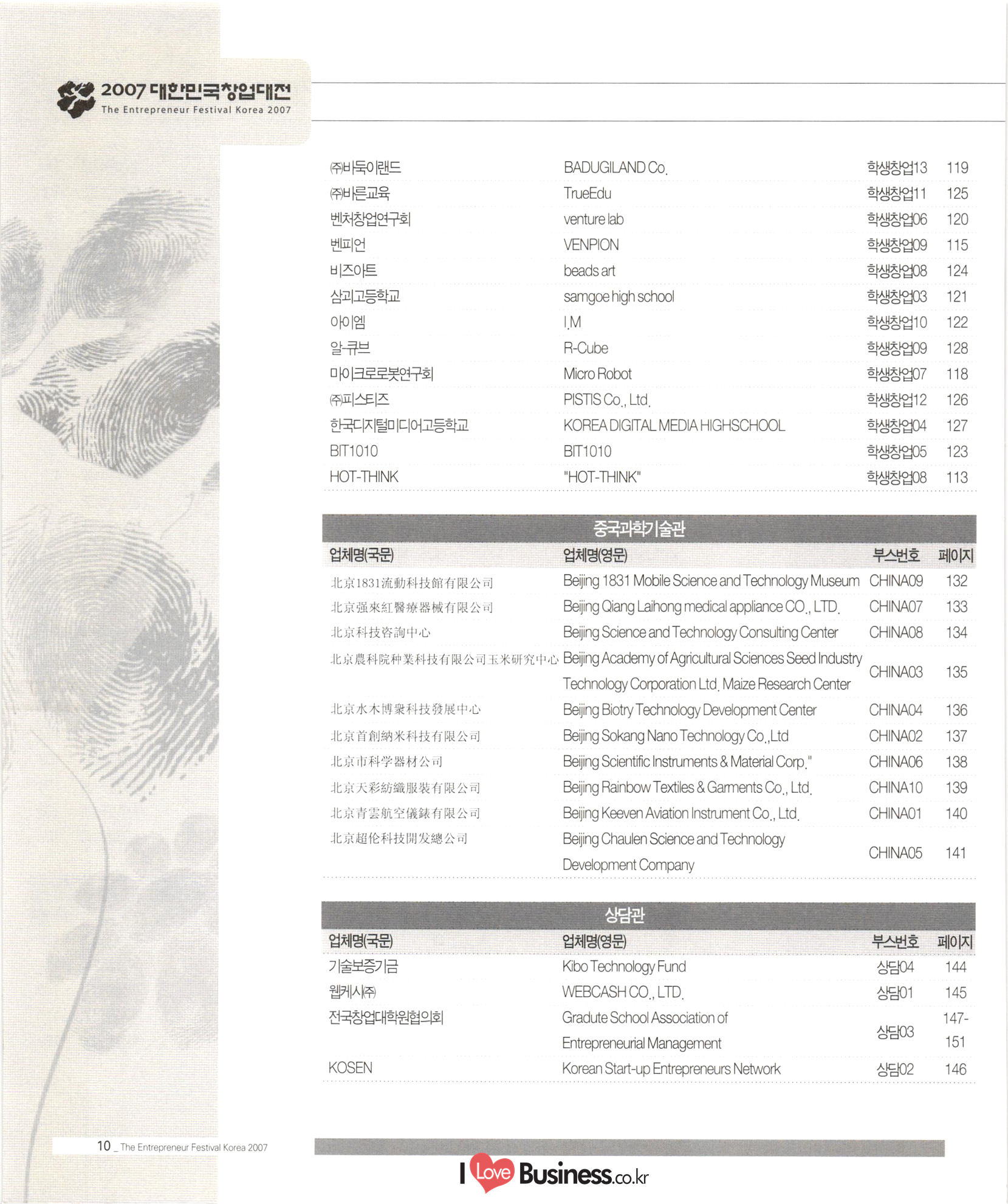 | 2007 대한민국창업대전 출품업체리스트 : 2 (0) | 2022.03.11 |