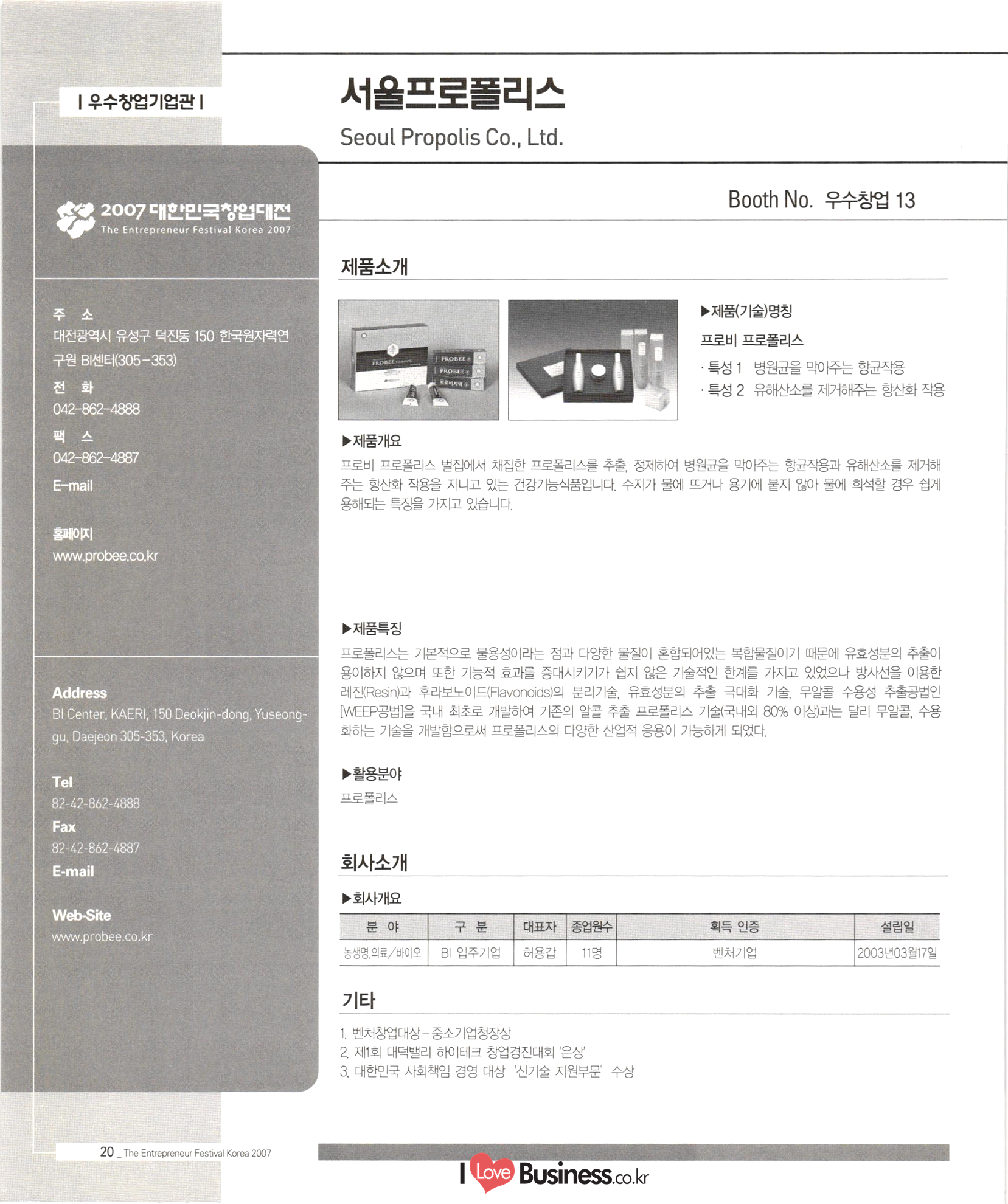 MCA MulDaenDongSan Clinic Mirico Co., Ltd. BIOPROPOLIS TECHNOLOGY CO., LTD. Blooming B&l SDCFOOD CO., Ltd. sangbangwon.co.kr SEJIN SI CO., Ltd. SOULROOT