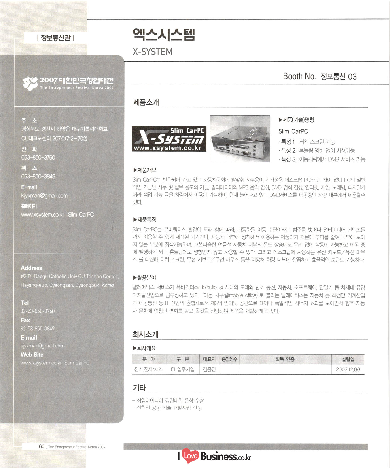 X-SYSTEM (Slim CarPC) 정보통신04 (주)영산시스템