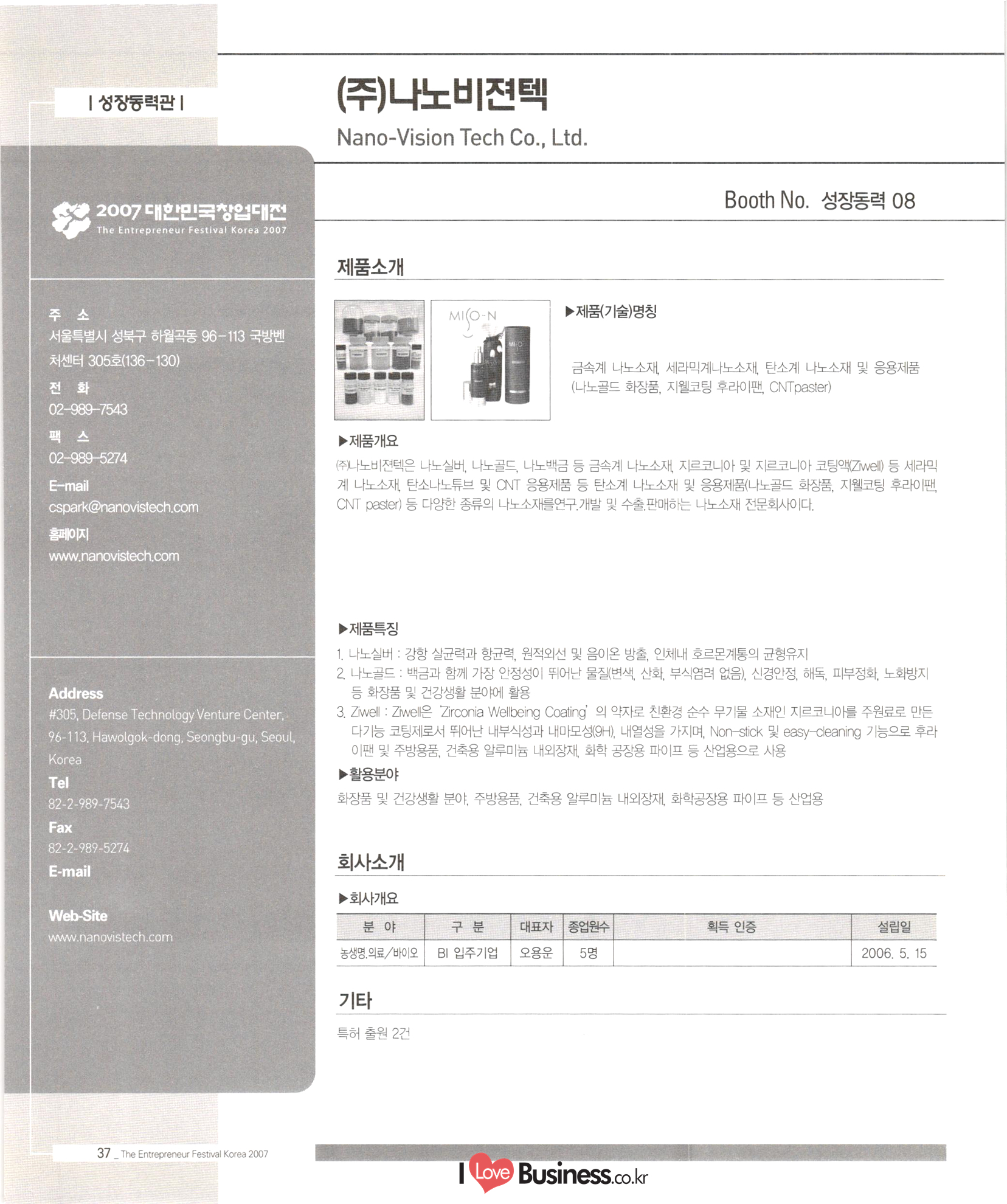 2007 대한민국창업대전 출품업체리스트 : 2