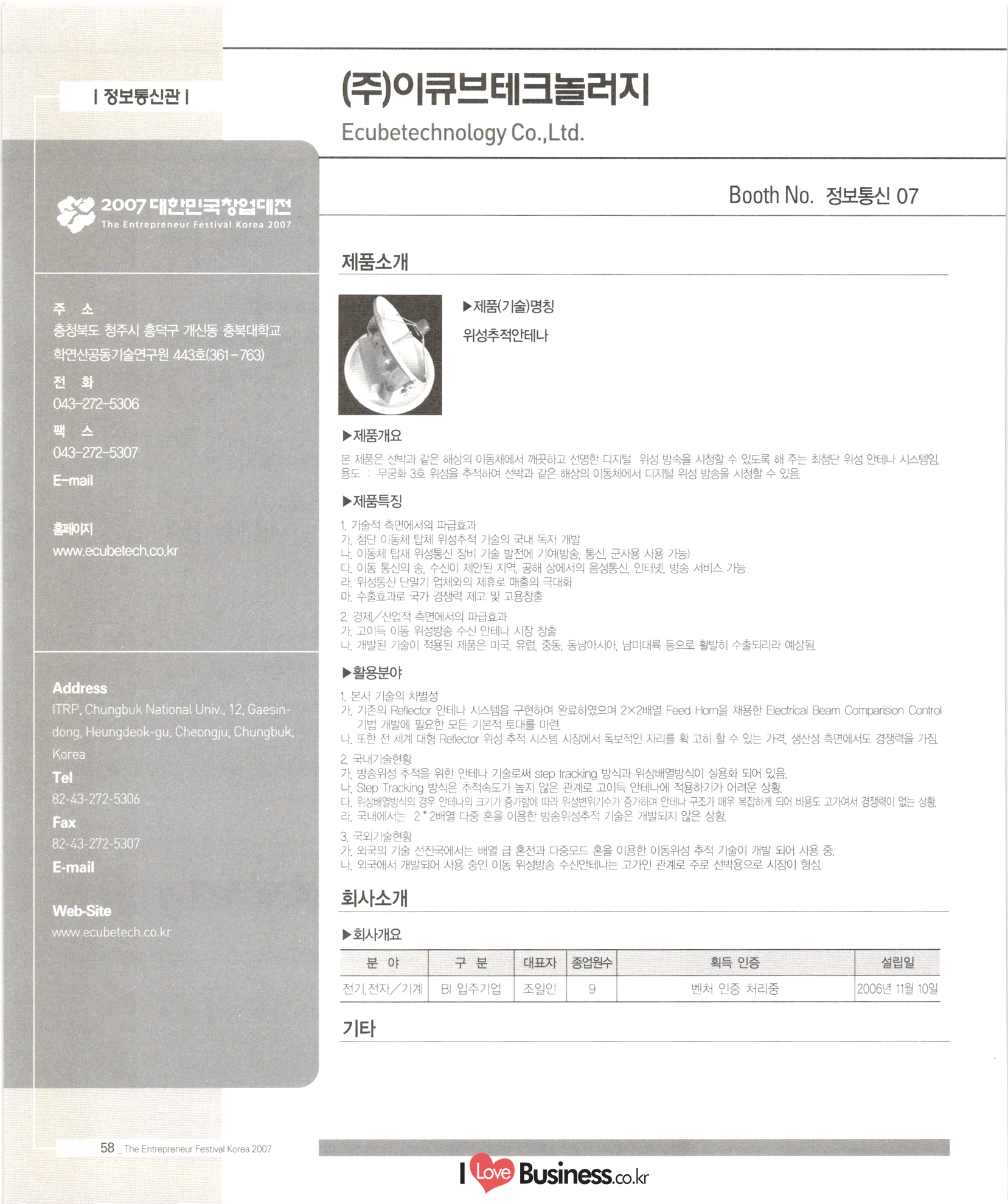 HAESOL TECHNOLOGY 정보통신07 "충북대창업보육센터 (주)이큐브테크놀로지" ecubetech.co.,LTD 정보통신08 이스토리아