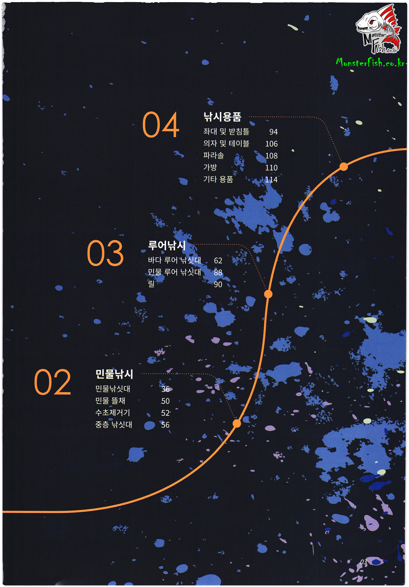 좌대 및 받침틀, 의자 및 테이블, 파라솔, 가방, 바다루어 낚시대, 민물루어 낚시대, 릴, 민물낚시대, 민물 뜰채, 수초제거기, 중층 낚시대,