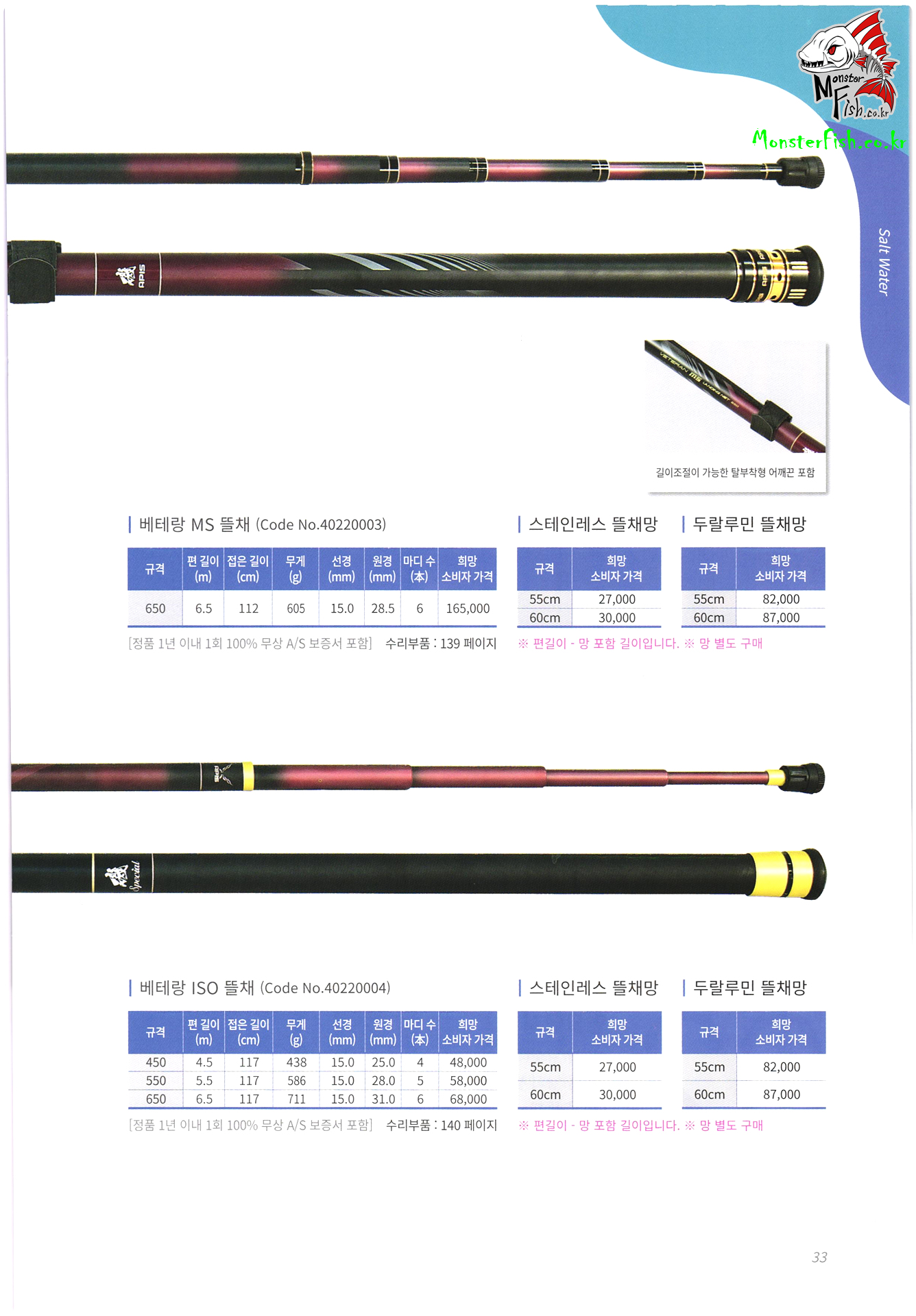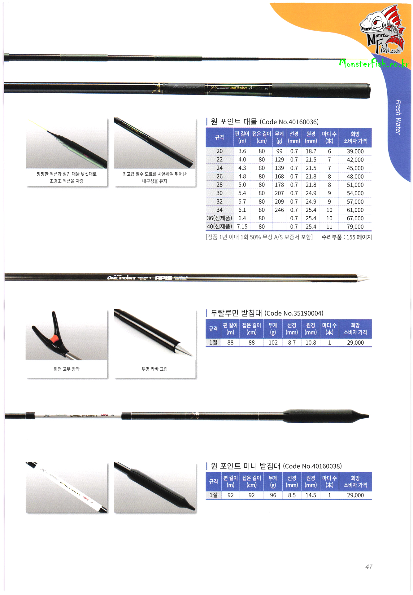 낚시용품 가격표, 수리부품 가격표,