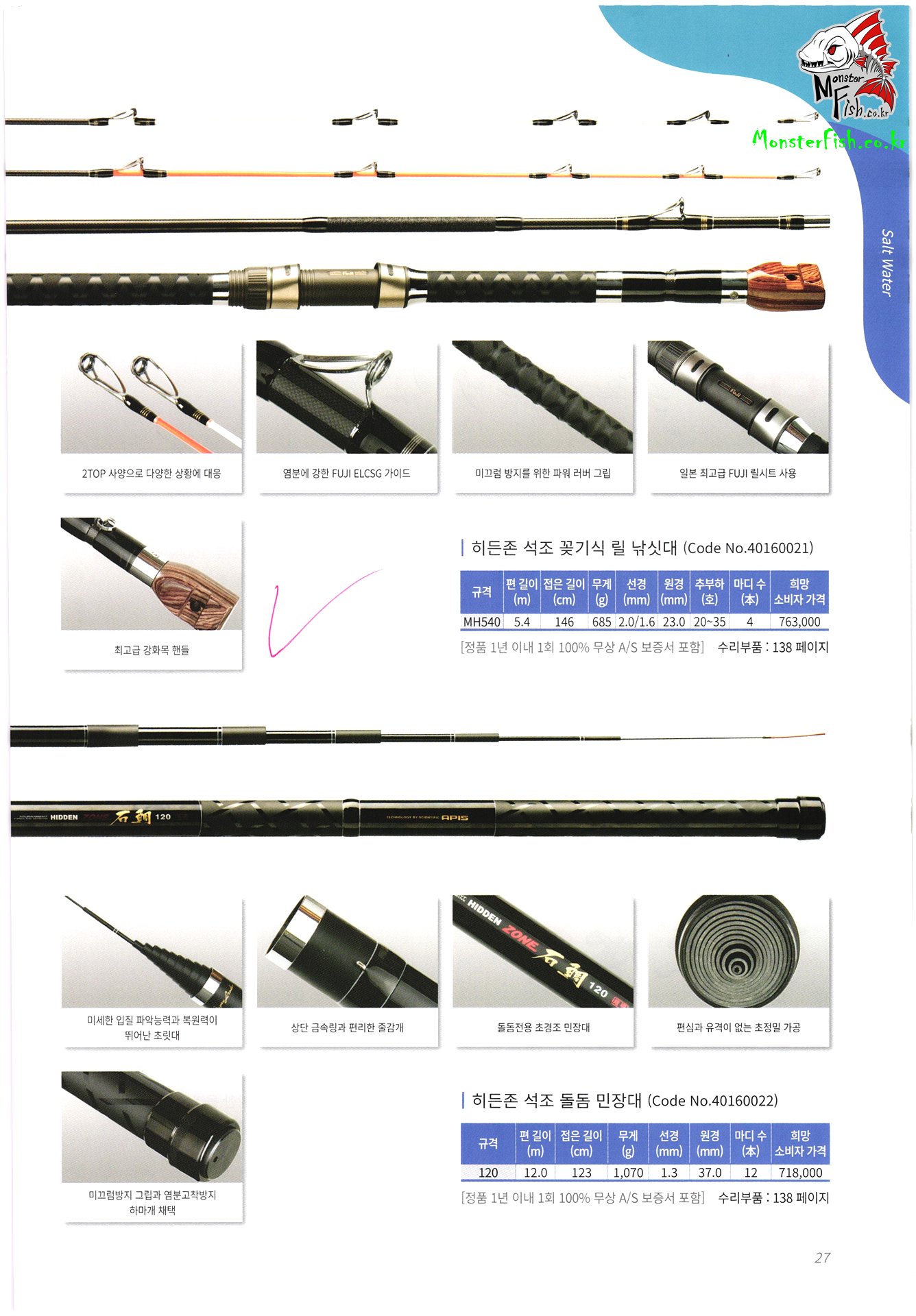 갯바위 릴 낚시대, 방어 부시리 전용 낚싯대, 원투 낚시대, 선상 낚싯대, 돌돔 낚시대, 바다 민장대, 바다 뜰채,
