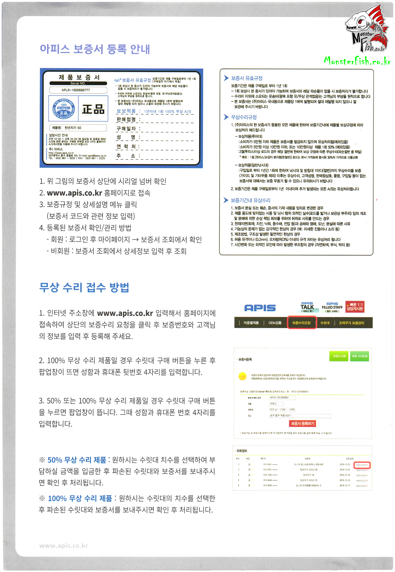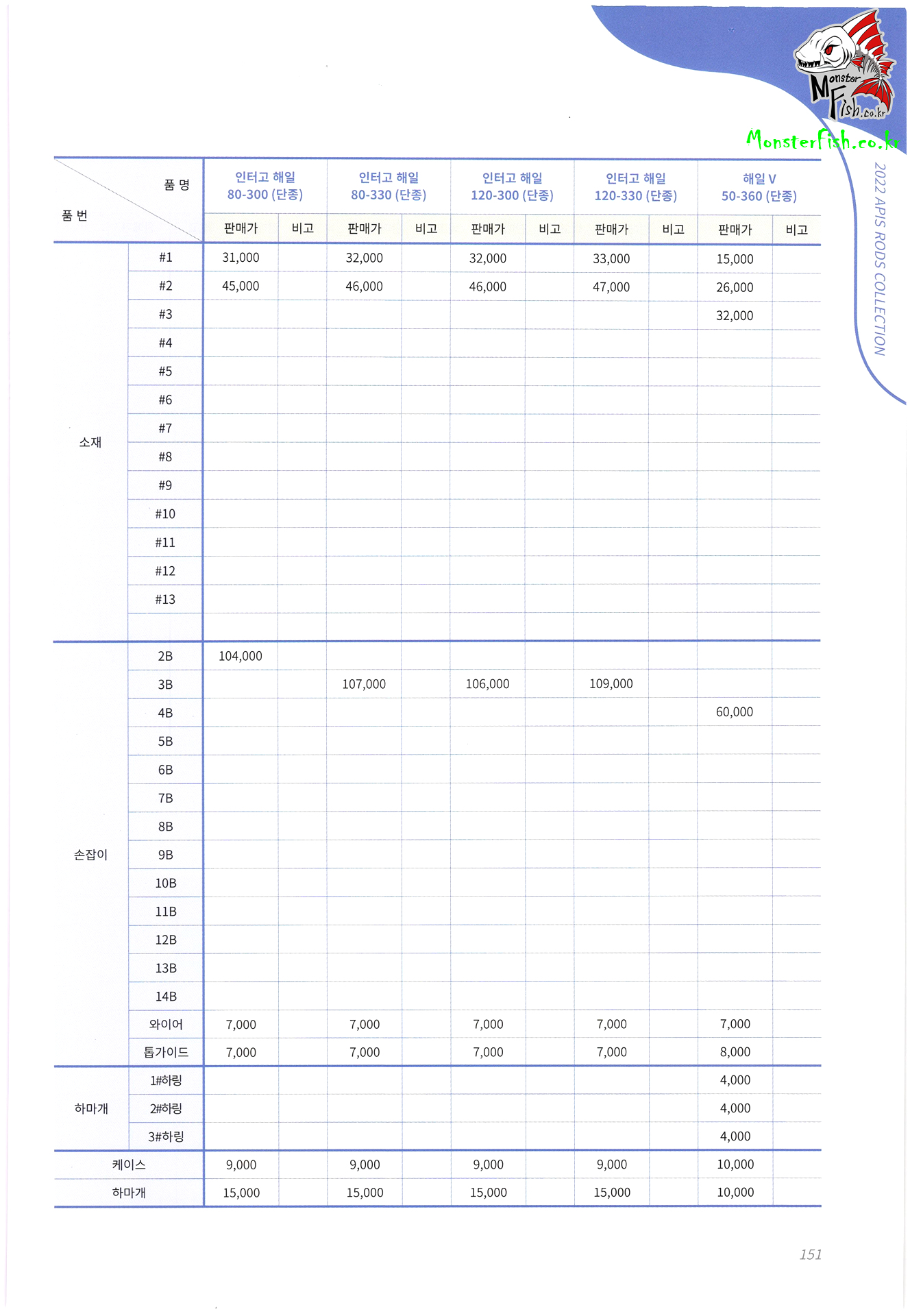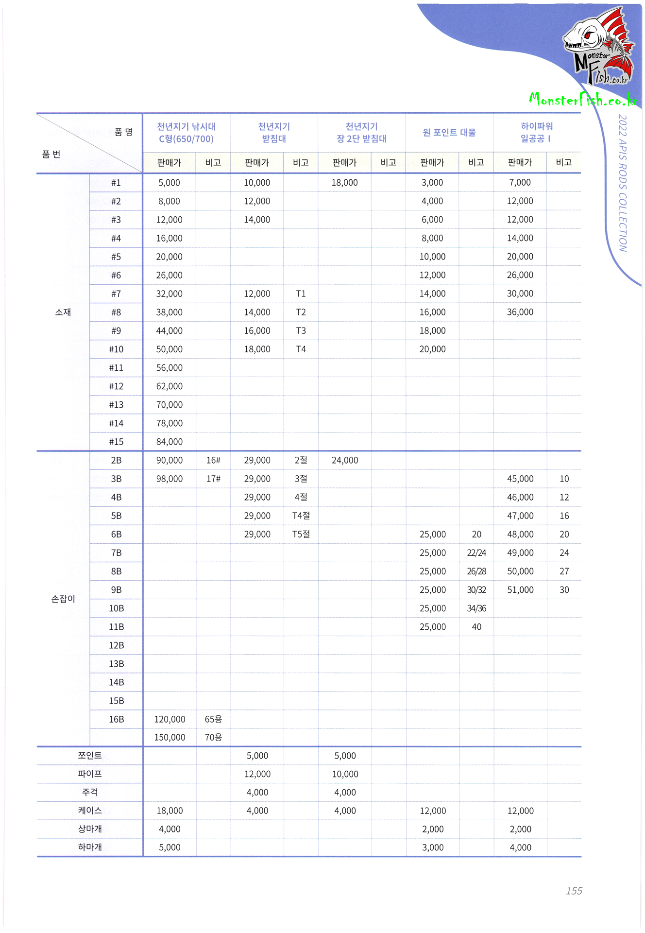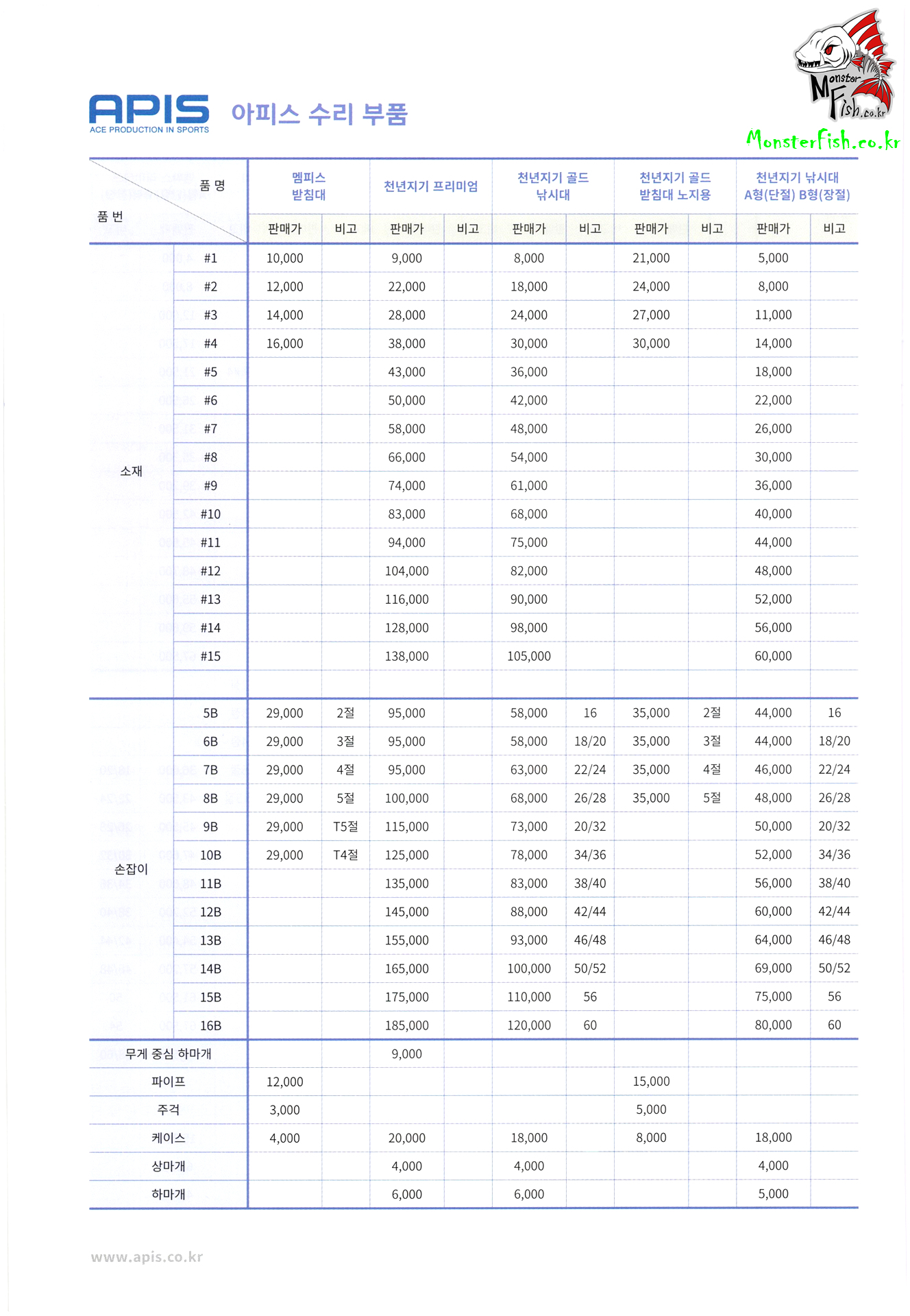 APIS. 아피스 낚시용품 및 수리부품 가격표 : 4