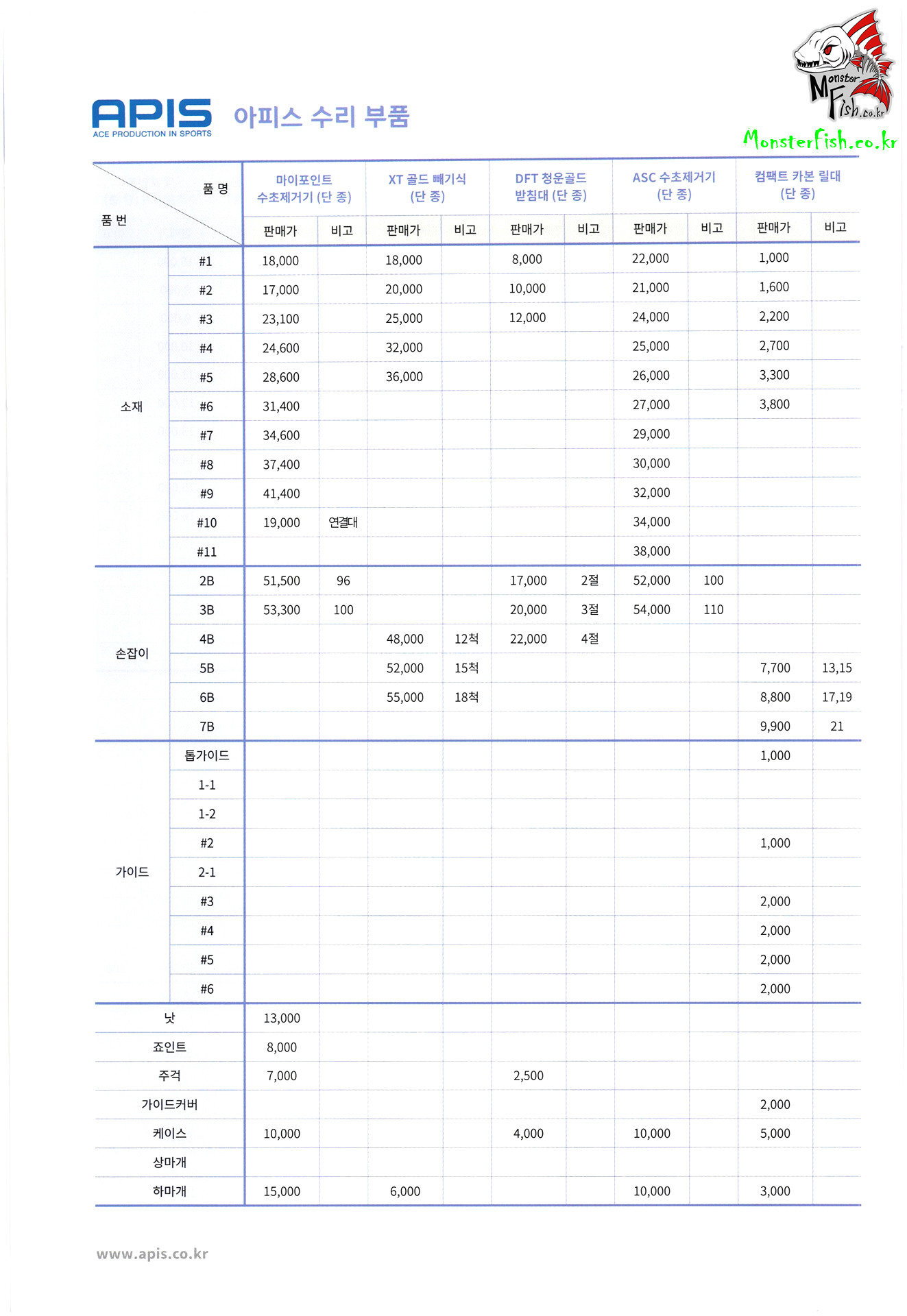 | APIS. 아피스 낚시용품 및 수리부품 가격표 : 2 (0) | 2022.03.14 |