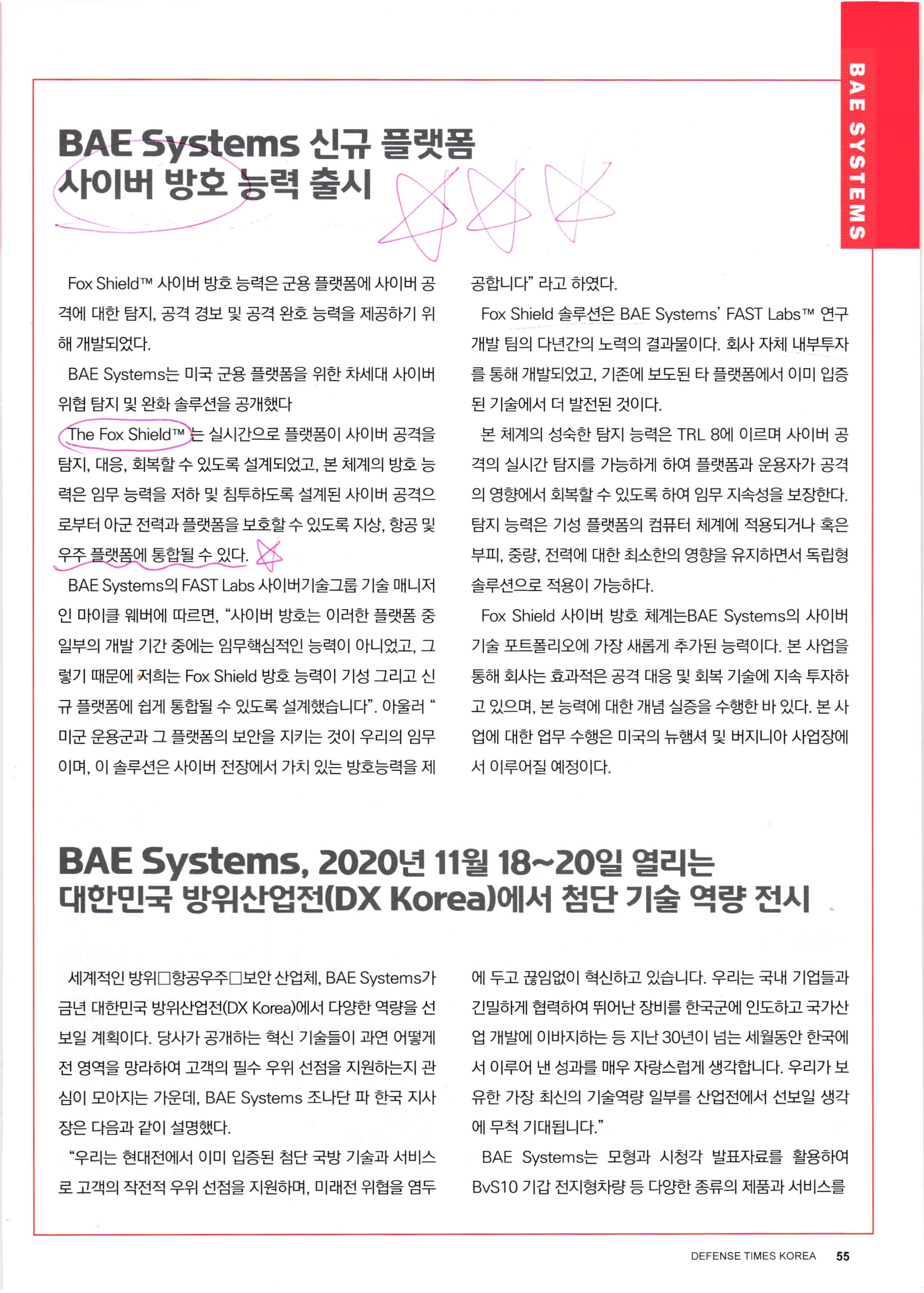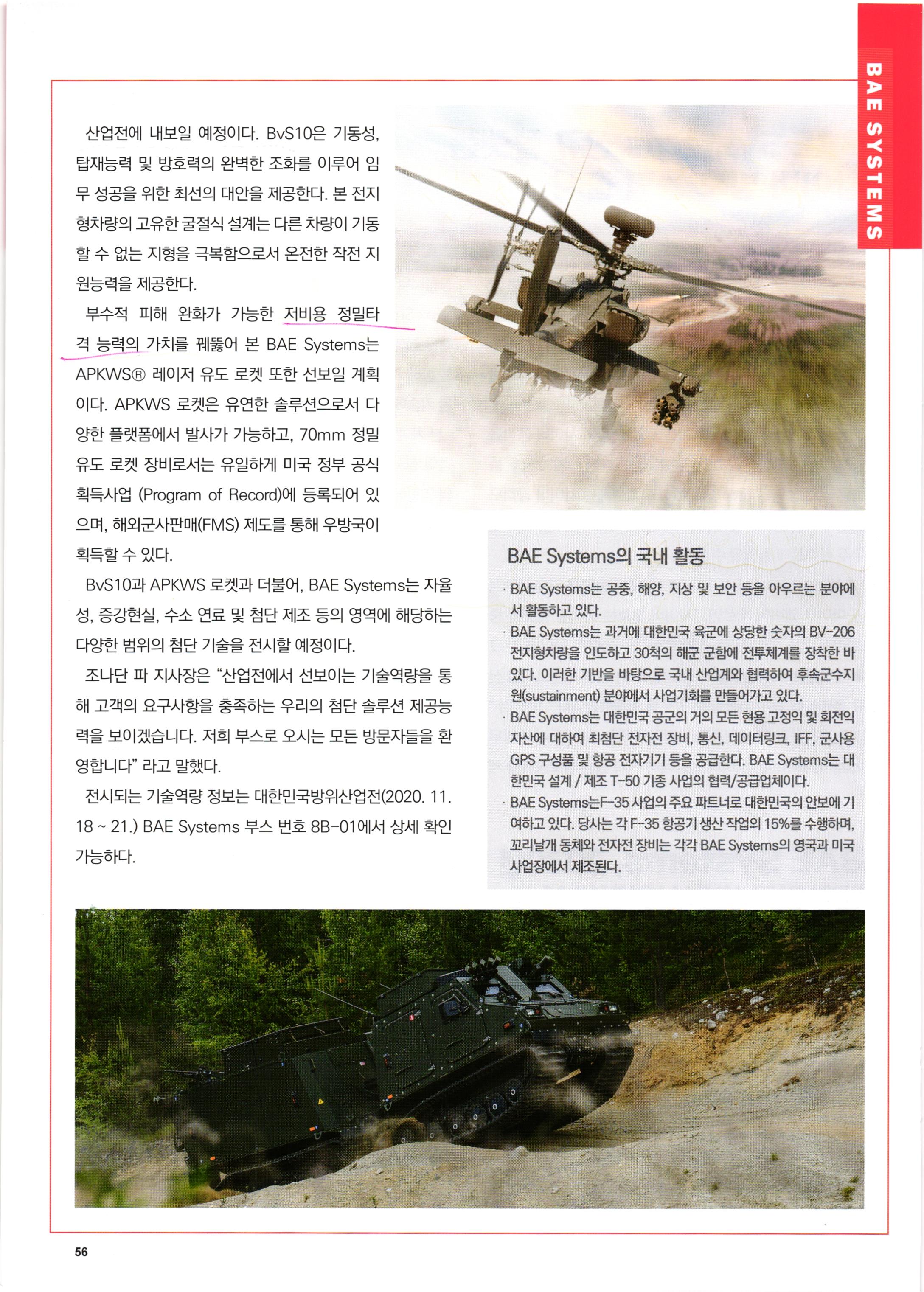 BAE 시스템즈의 다양한 화력 및 비화력체계.