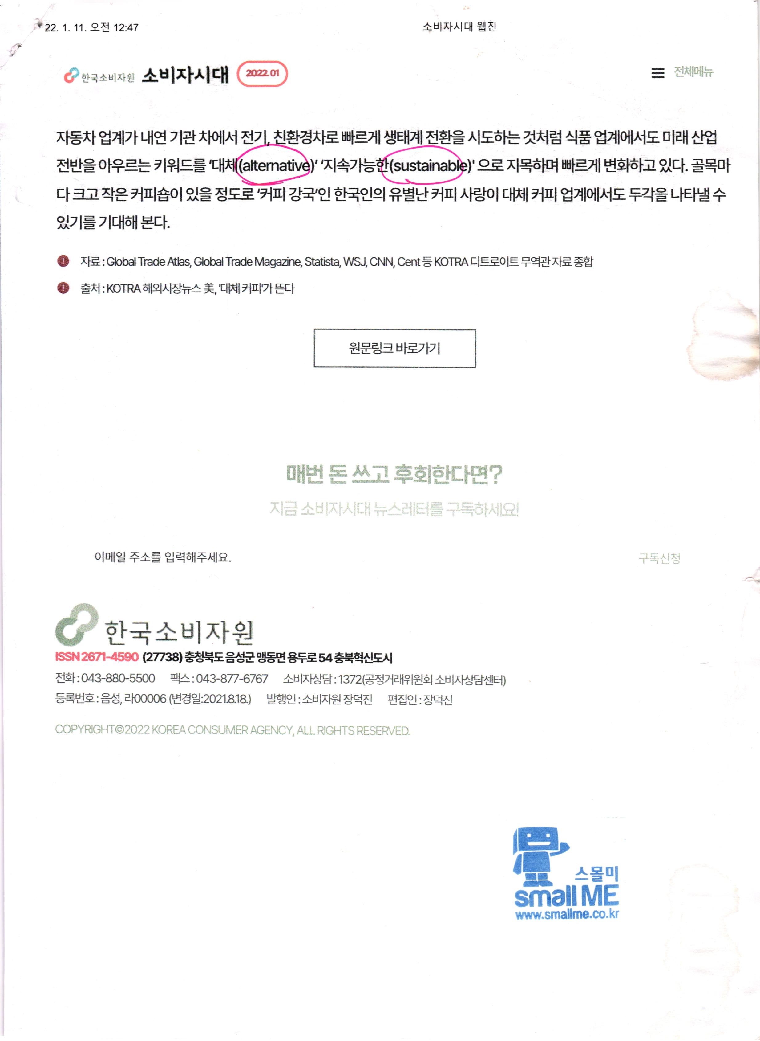 - 원두가격 인상, 탄소 배출 요인 등으로 수요 증가 -