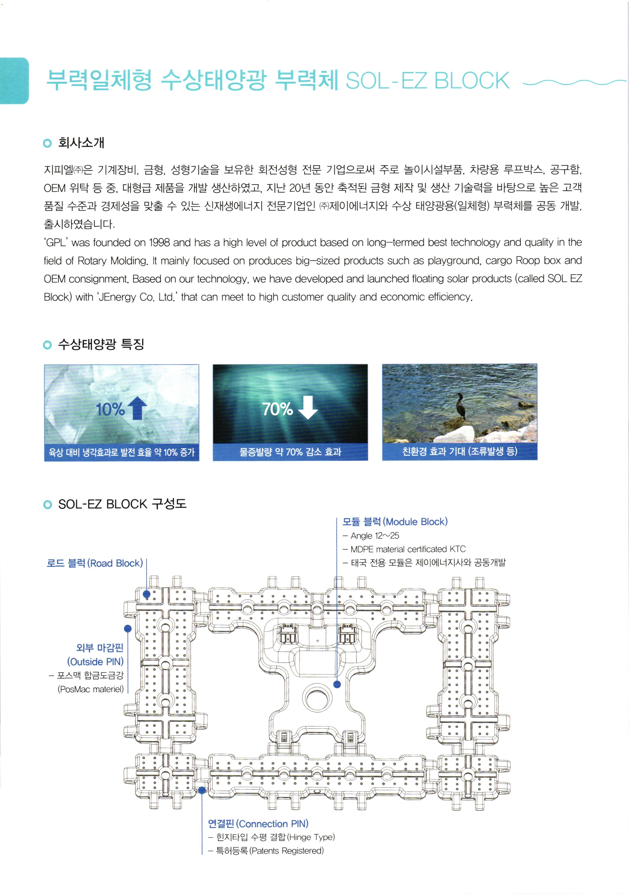 수상태양광 독립형 부력체 / 지피엘(주), 메가솔라. 태양광발전소,태양광발전 접속반, 모니터링 시스템, 큐브소프트,