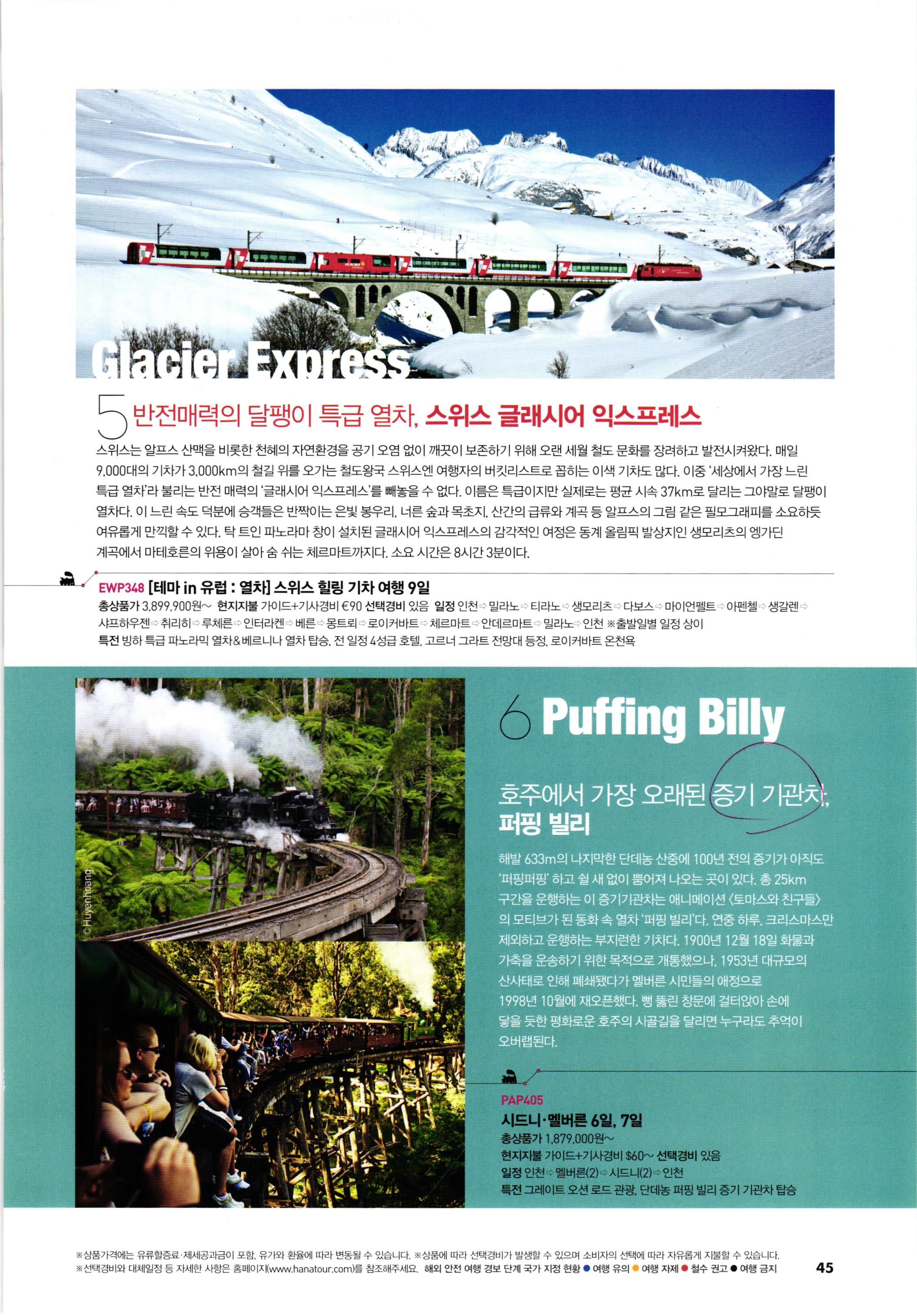 리스티를 이야기를 싣고 달리는 세계의 이색 기차 7 42 남미 벨몬드 안데안 익스플로러 43 대만 핑시선 44 비아레일 캐나다 횡단 열차&숑고롤로 익스프레스 45 글래시어 익스프레스&퍼핑 빌리 46 러시아 시베리아 횡단 열차