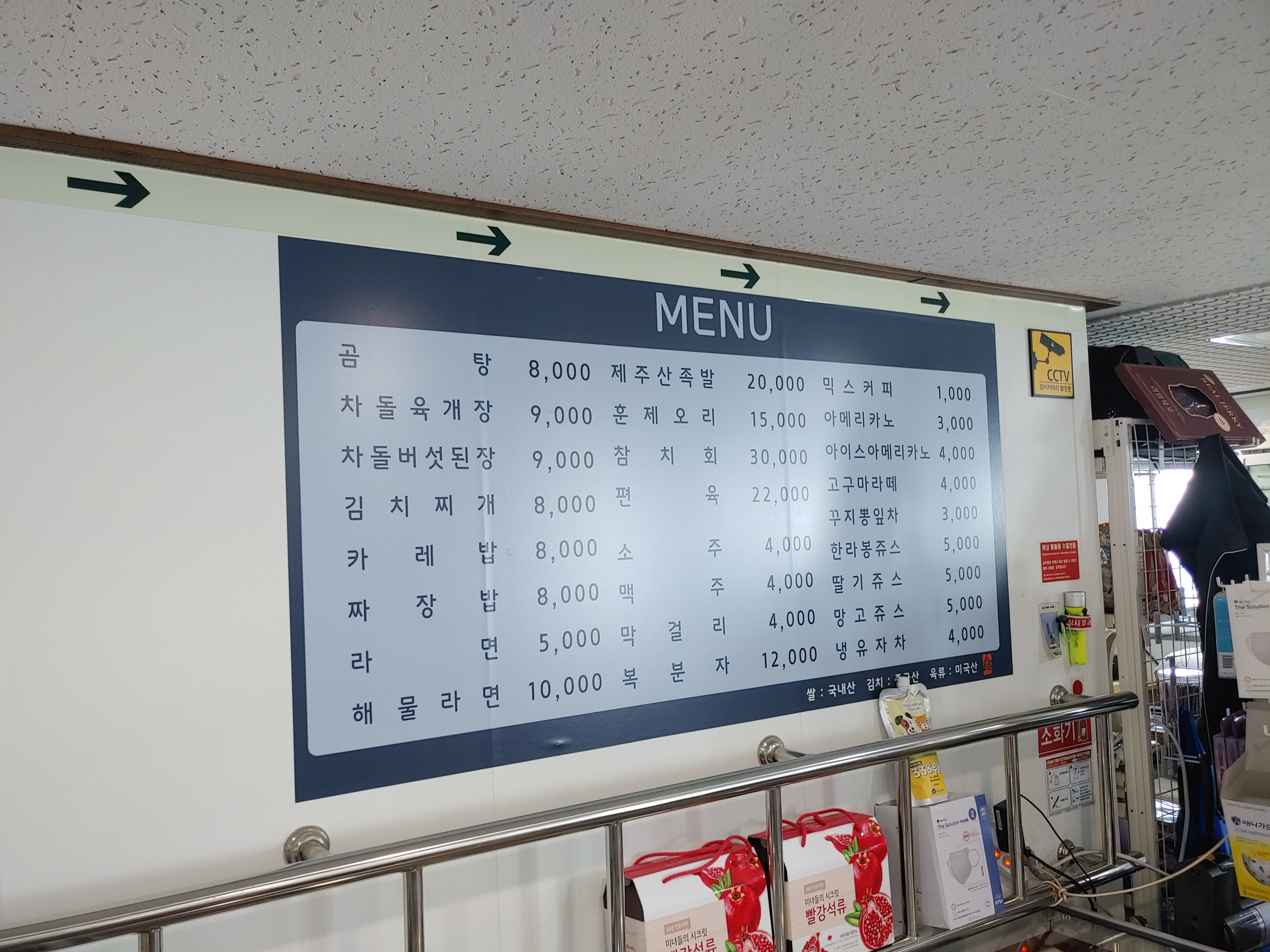 선내 식당 메뉴표.