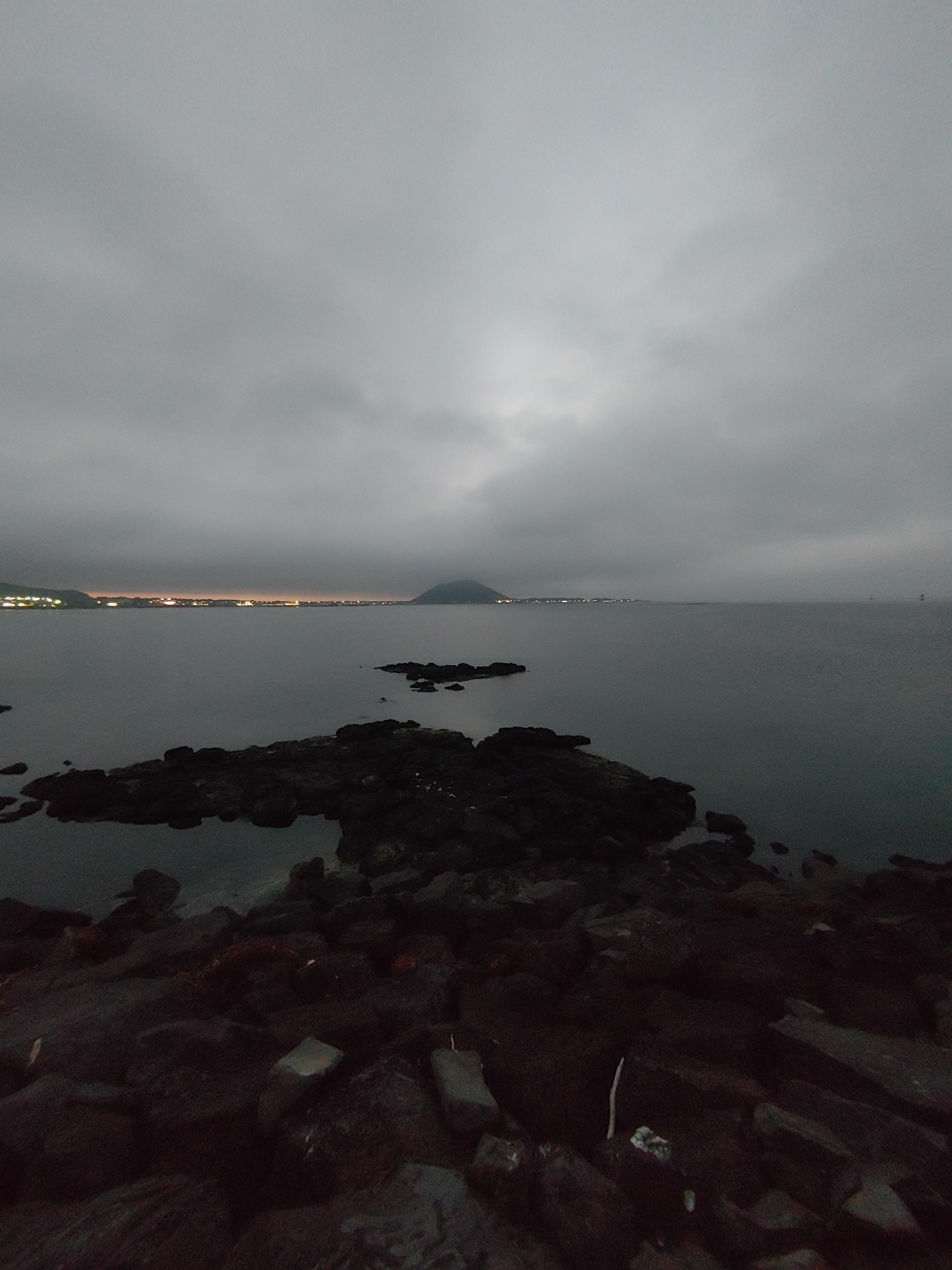 바다 위에 섬이 솟아오르는 것처럼 보여서 눈이 먼저 갔다