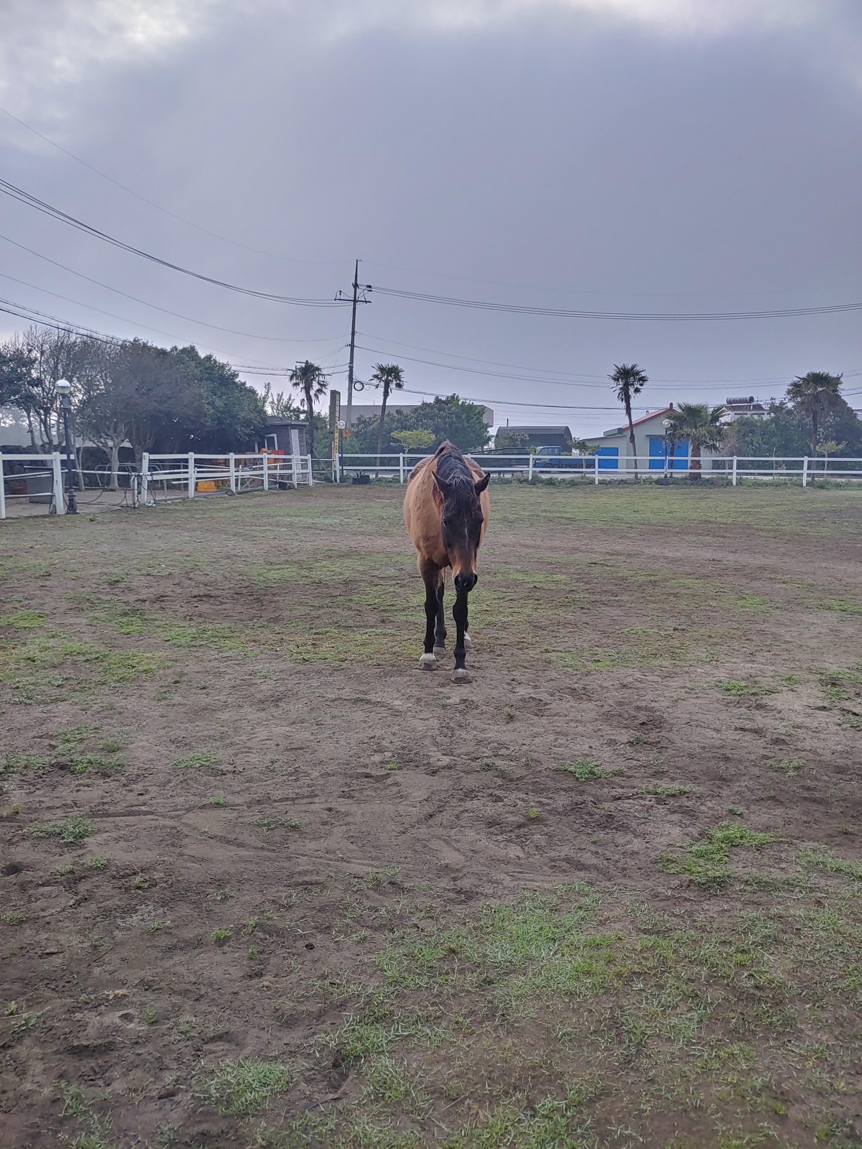어제 사과를 한개 줬더니...아침에 나가자 마자 나에게 어슬렁거리면서 다가오는 말....