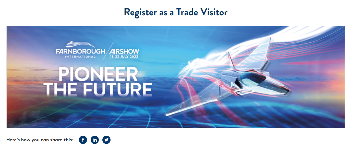 Farnborough International Airshow 2022 trade visitor registration