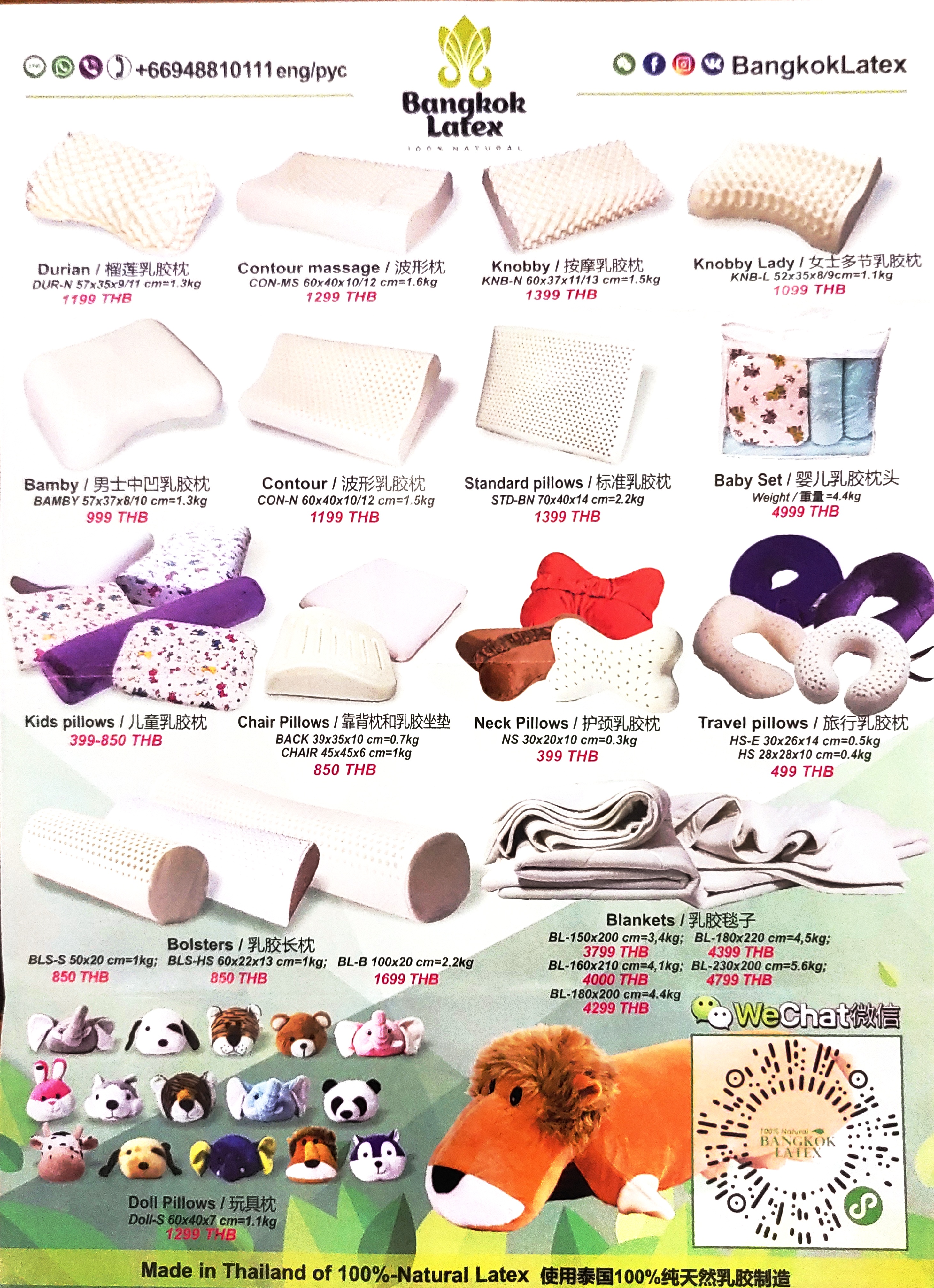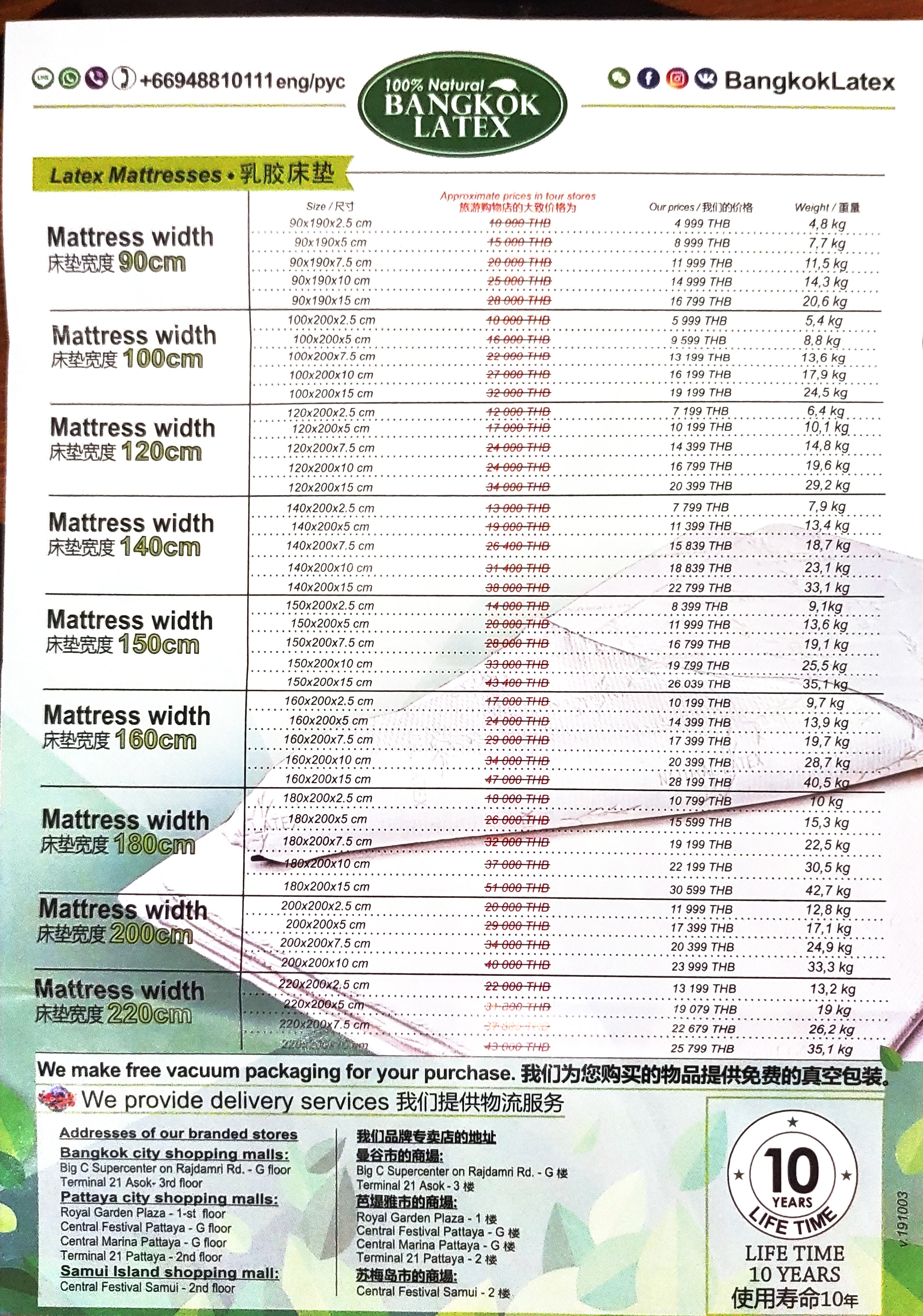 방콕 라텍스의 가격표