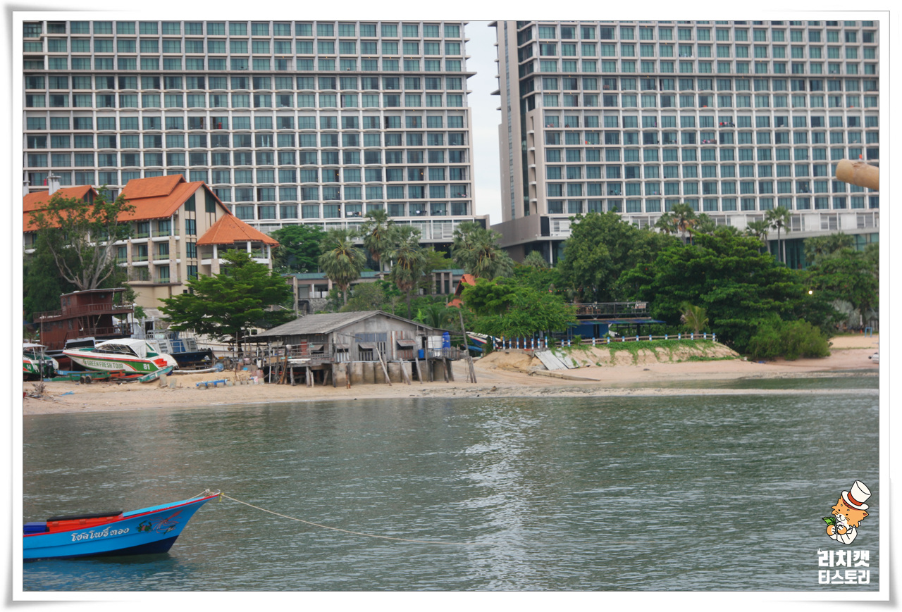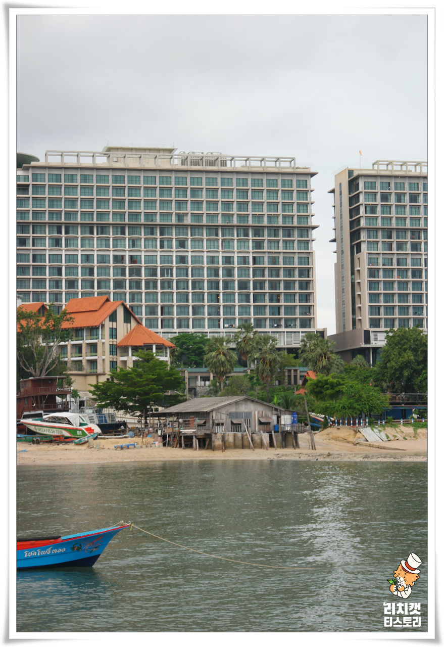 뒤에는 현대식 대형 호텔(콘도)가 있고.