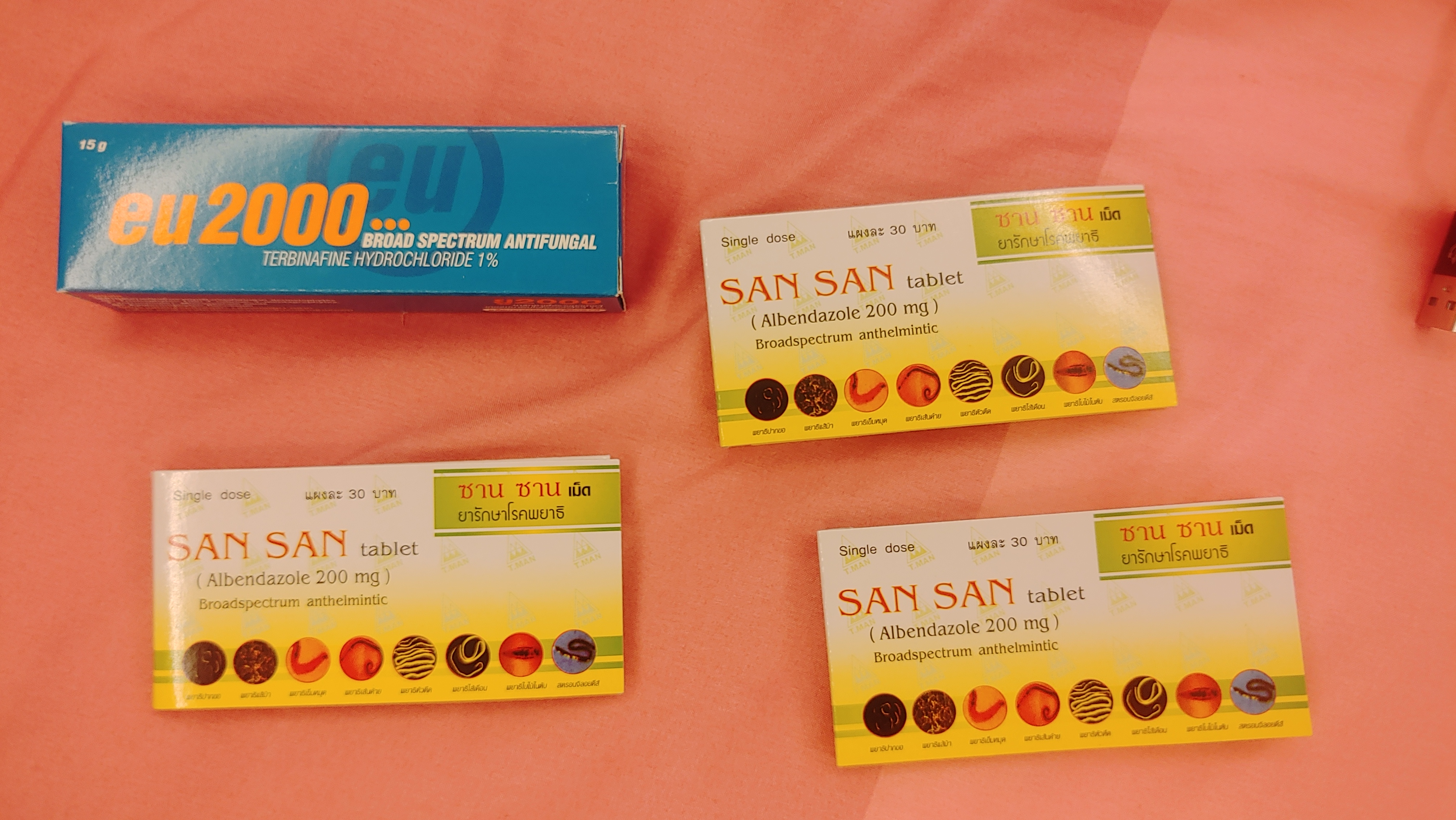연고 1개, 구충제 3개, 11000원이면...한국보다 비싼 듯. 태국인 디스카운트가 있을까???