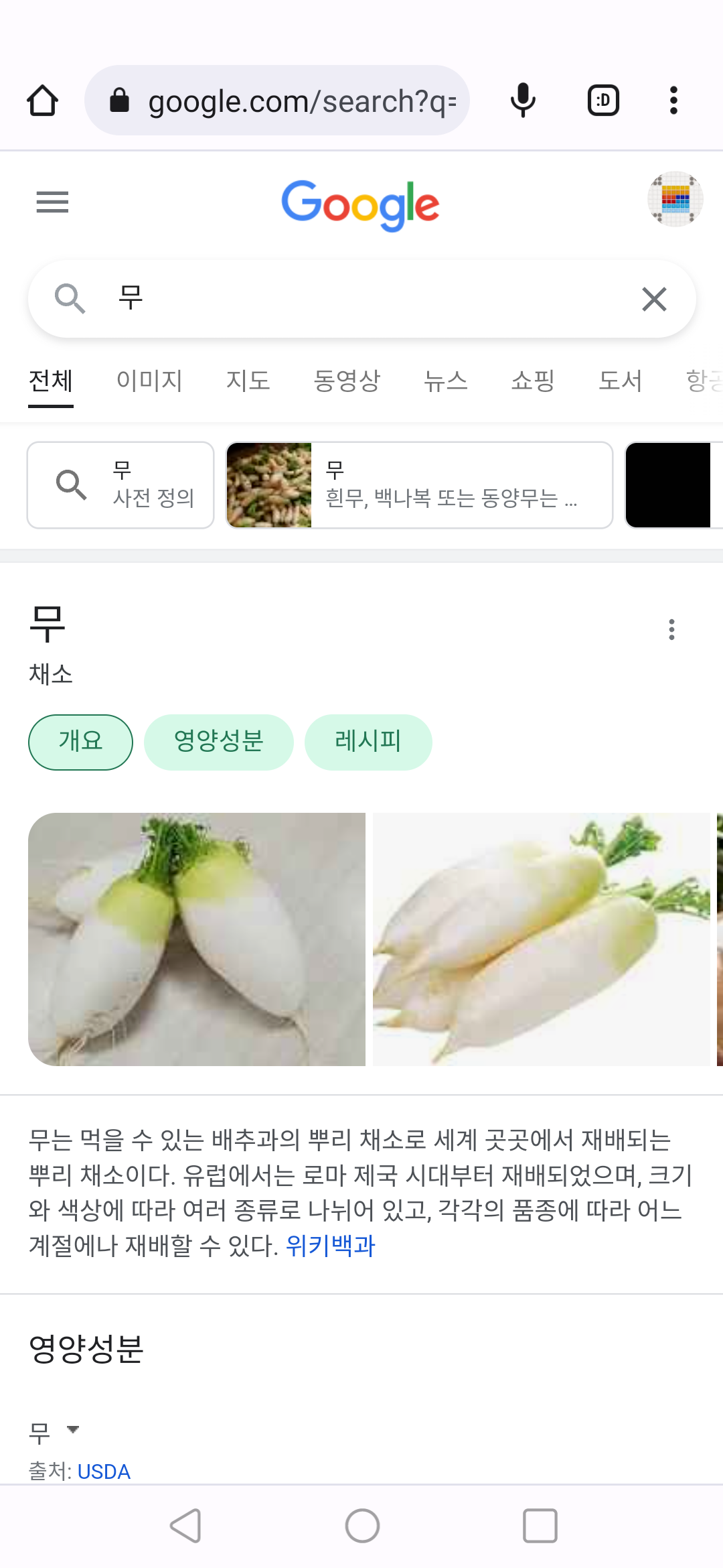 "무좀"을 번역한 결과가..."무" 무김치의 무....가 나온다고 알려준다. 사진으로..ㅋㅋㅋ