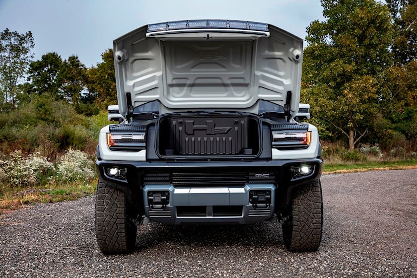 침대에 모든 것을 넣을 수 없다면 위쪽에 엔진이 없기 때문에 트렁크에 충분한 공간이 있습니다. 전동 eTrunk는 4개의 루프 패널을 모두 깔끔하게 장착할 수 있는 충분한 공간으로 방대합니다. 침대, 앞 트렁크 및 뒷좌석 아래 수납 공간 사이에 Hummer가 대부분의 구매자에게 충분한 짐을 실을 수 있다고 상상합니다.