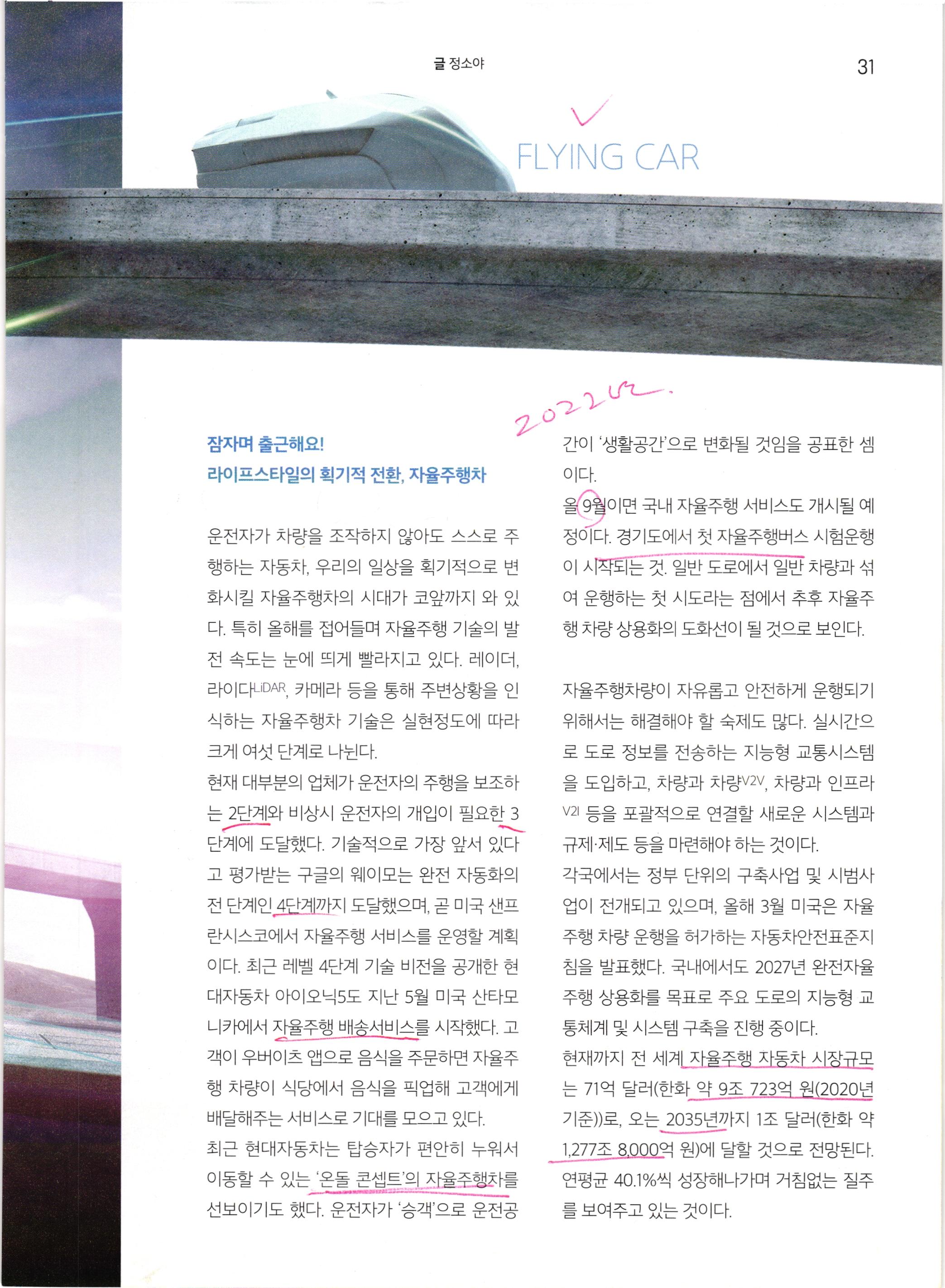 동시에 그 전에 먼저 완성될 것으로 보이는 것이 자율주행차이다.