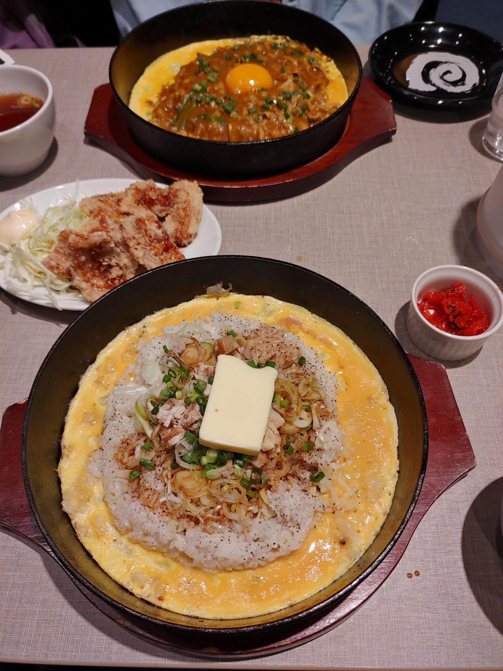 오늘 저녁은 철판카레덮밥. 마늘덮밥. 돼지고기 튀김 .... 총1700엔. 17000원
