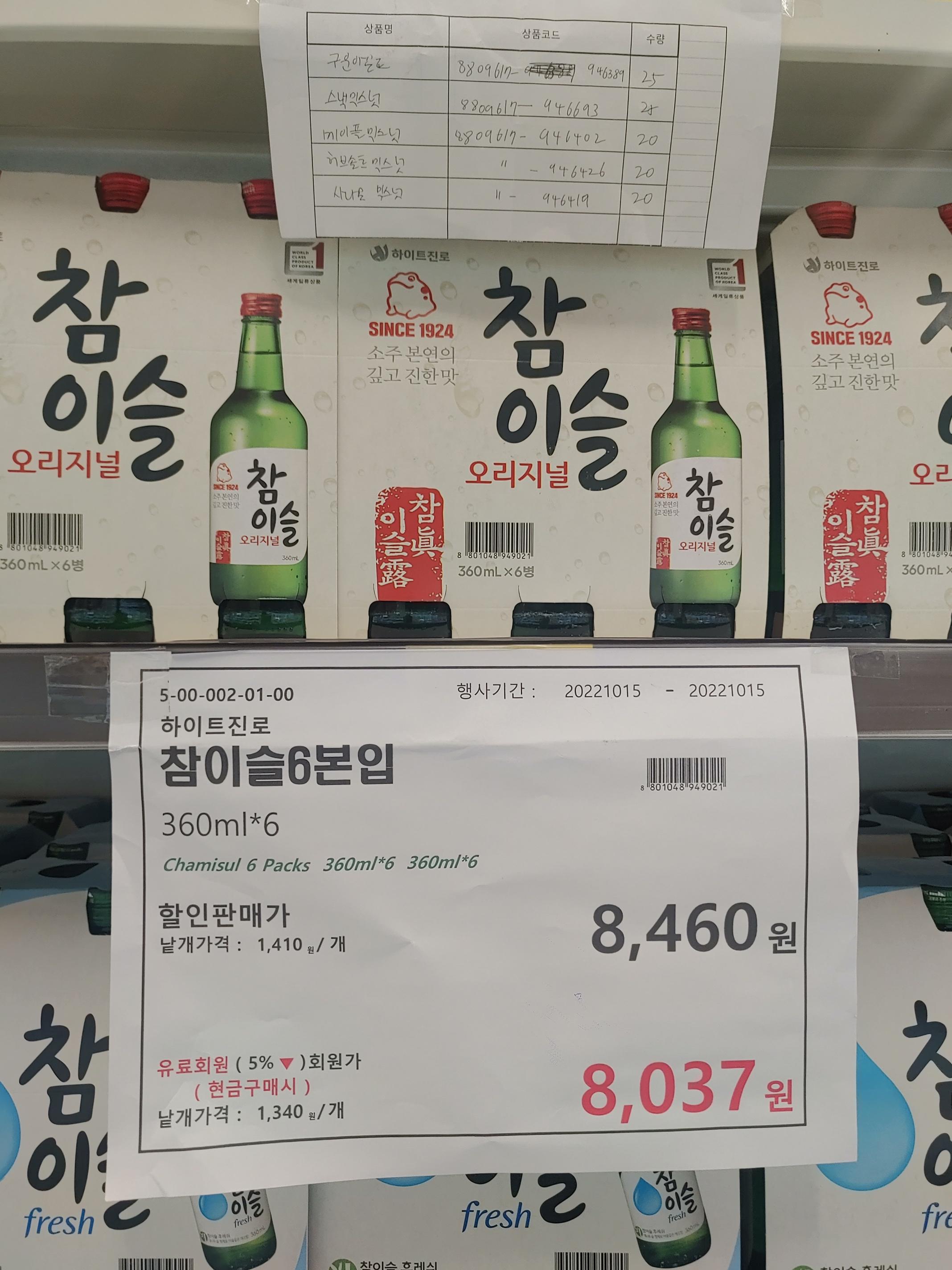 태국과 일본에서는 ... 소주 한 병에 5천 원에서 만 원에 팔리는 것으로 아는데 (130바트~200바트 . 500엔~1000엔) 한국에서는 여섯 개 한 세트에 8,000원. 한 병에 1400원 정도에 팔리는 서민들의 술입니다