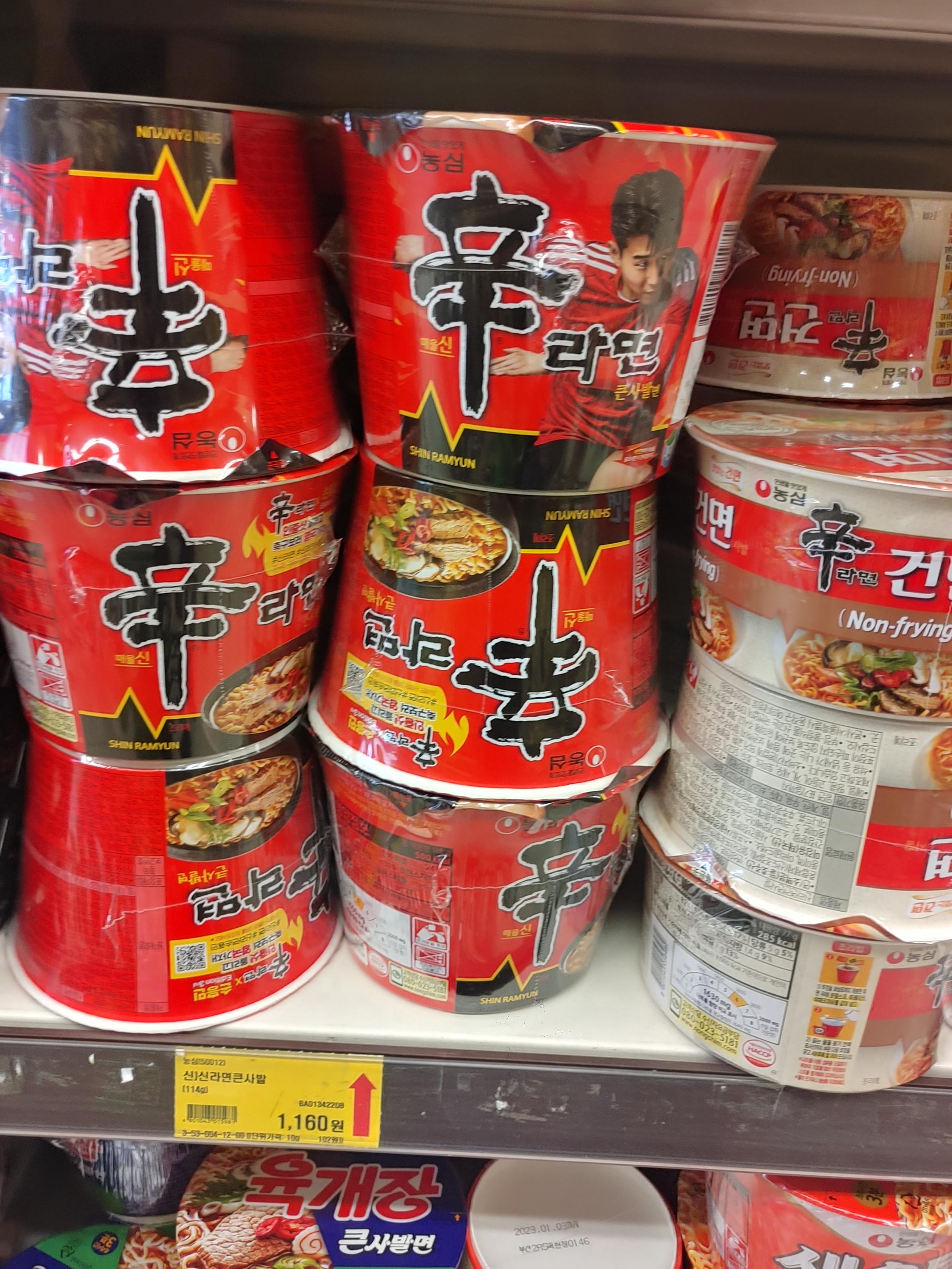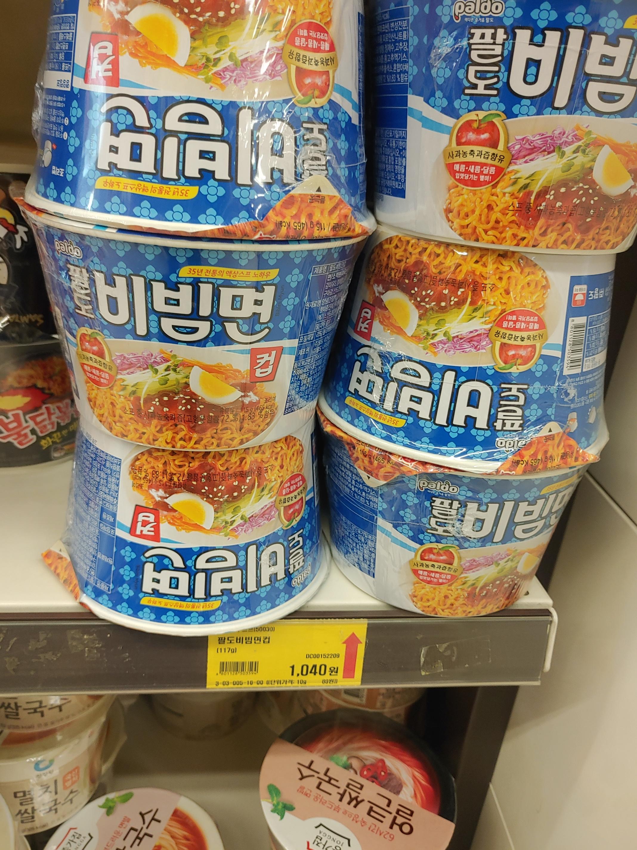 Shin Ramyun, large cup noodles, 1,160 won, Paldo Bibim Noodles, 1,000 won,