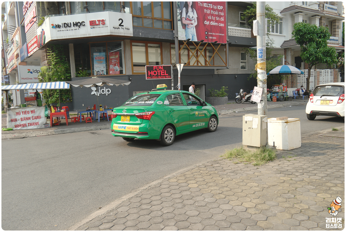 초록색 택시. 그 위에 펀호텔. 뻔호텔. 재밌는호텔.