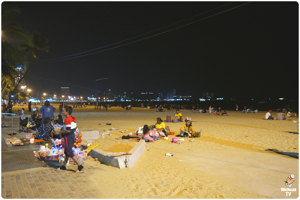 파타야 해변에서 2023 새해를 기다리는 태국사람들...