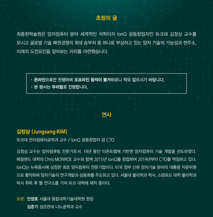 양자컴퓨터 세계적 권위자 김정상 듀크대 교수 특강