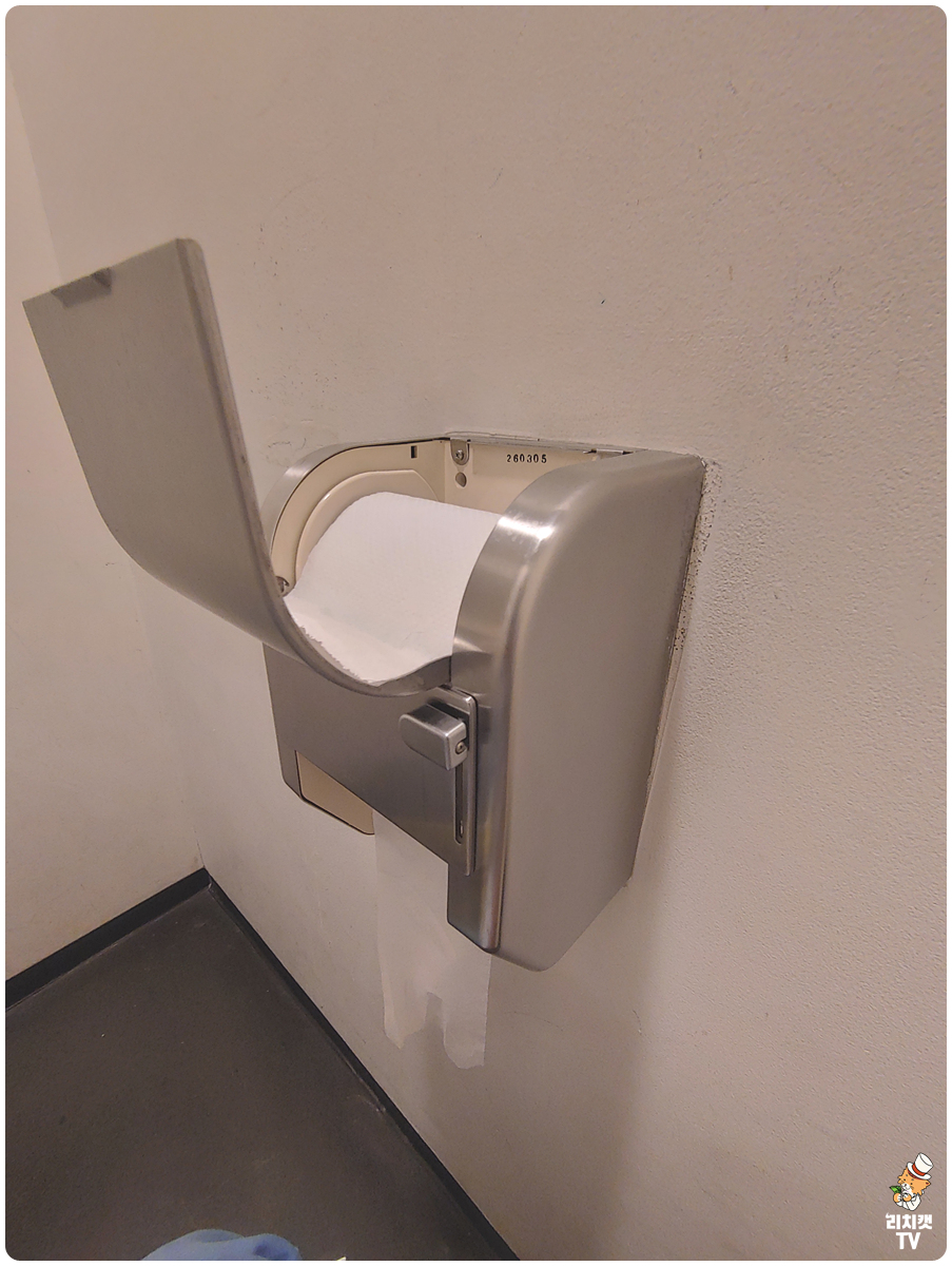 아래쪽을 다 쓰면...위에 예비화장지가 버튼에 따라 내려오는 구조...ㅎㅎㅎ