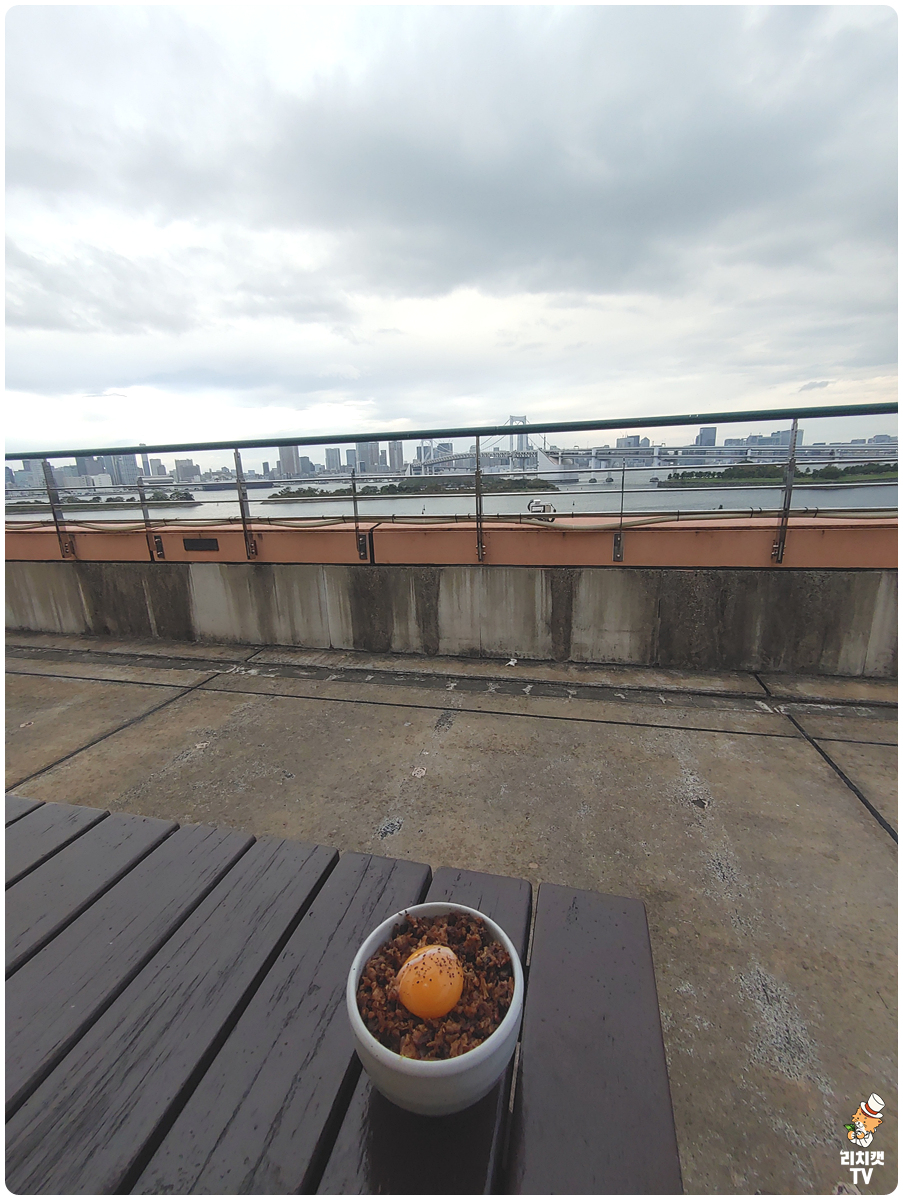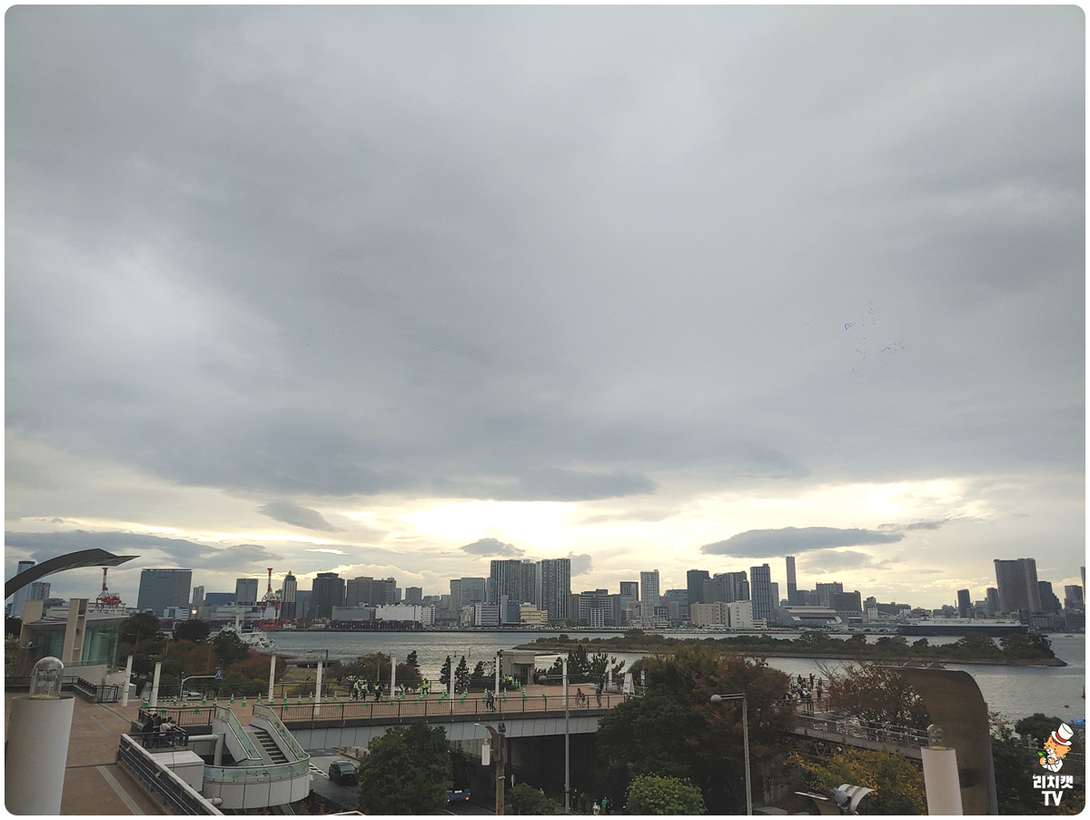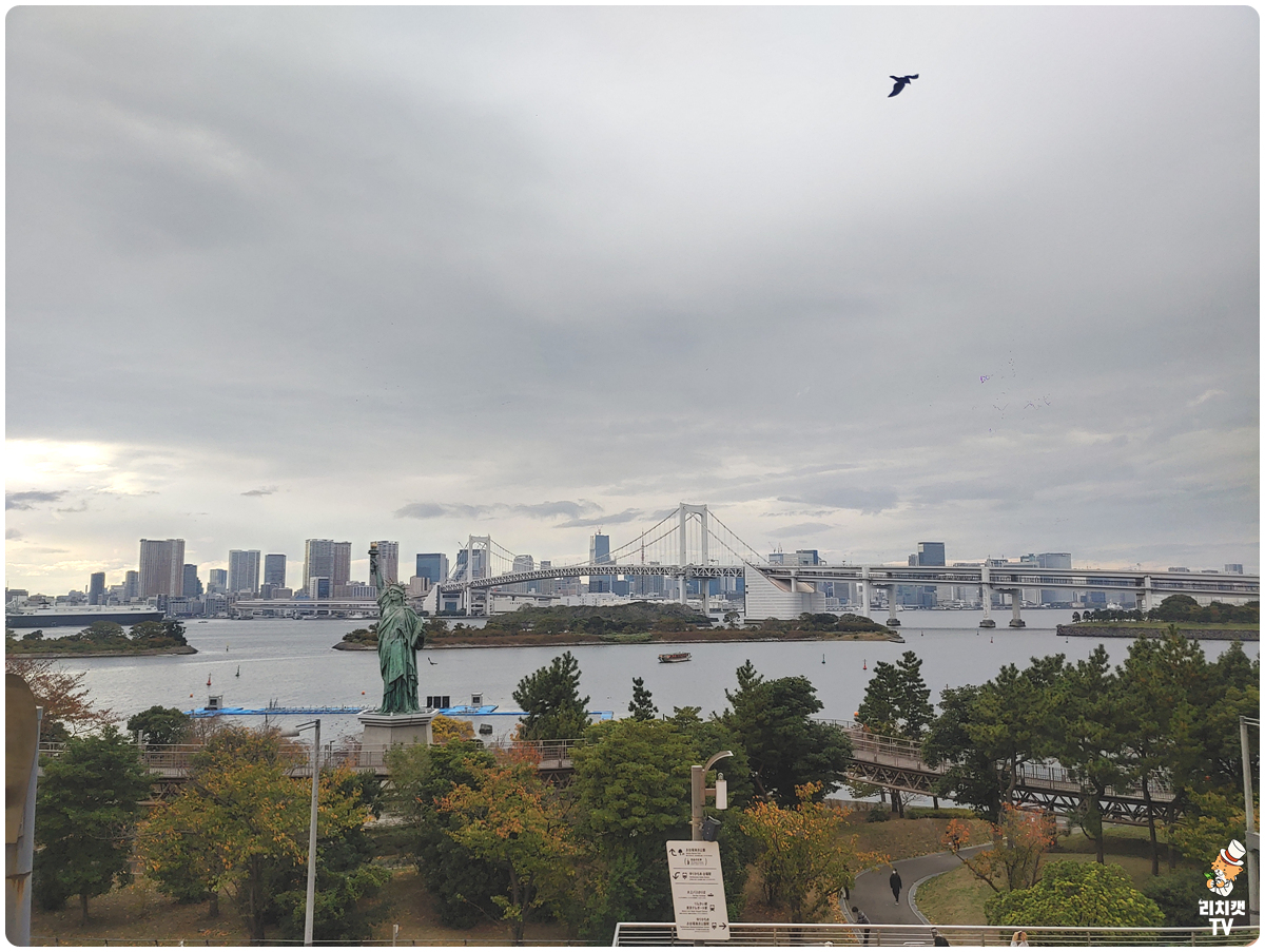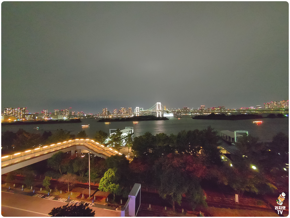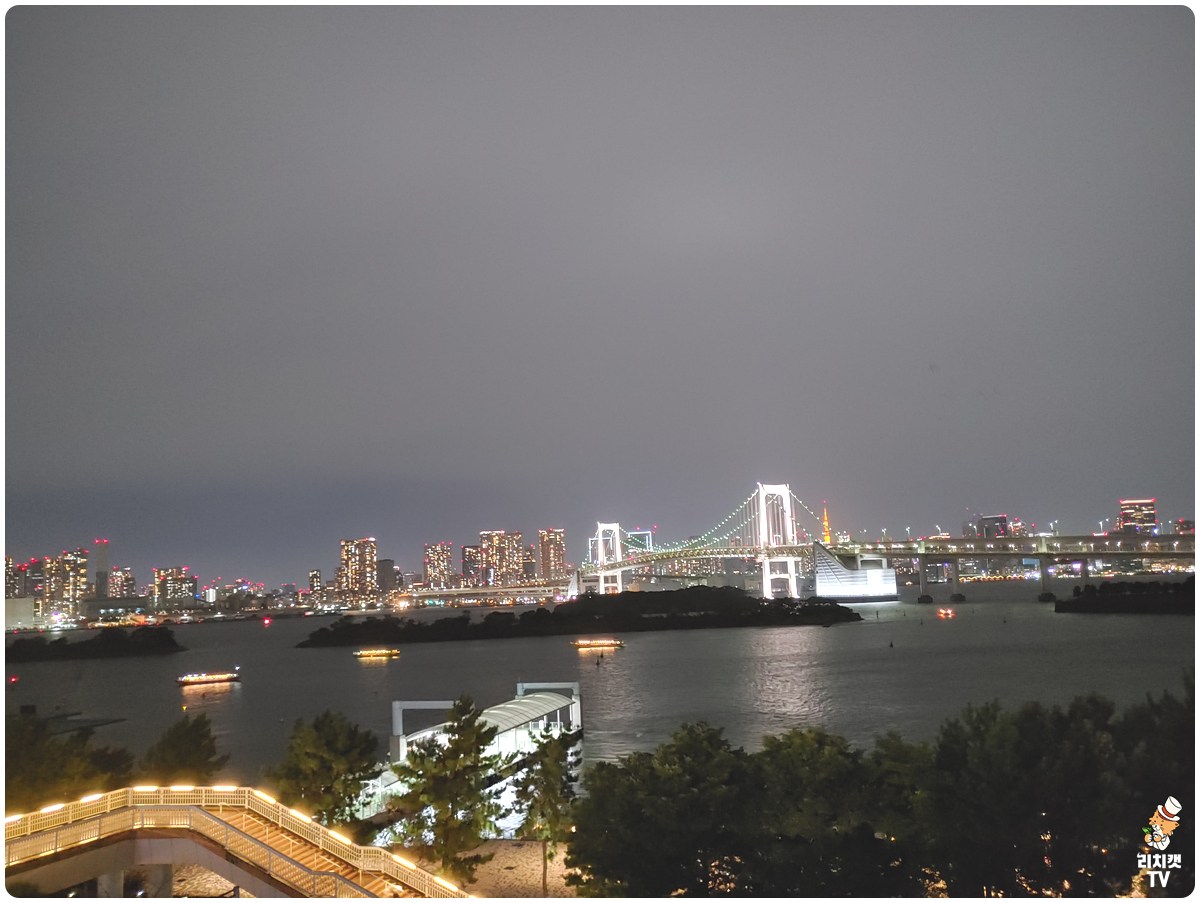 도쿄 오다이바의 레인보우브릿지를 바라보면서...일본식사는?