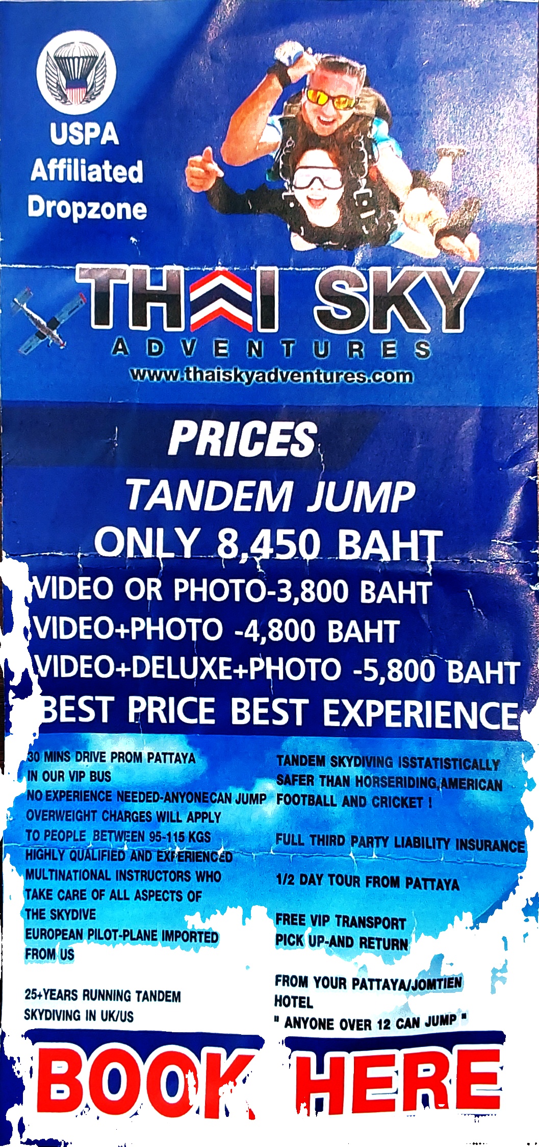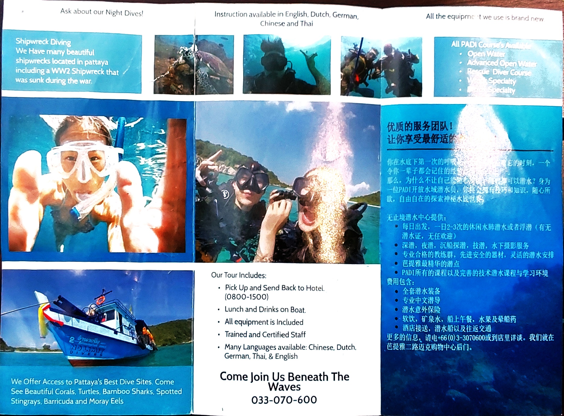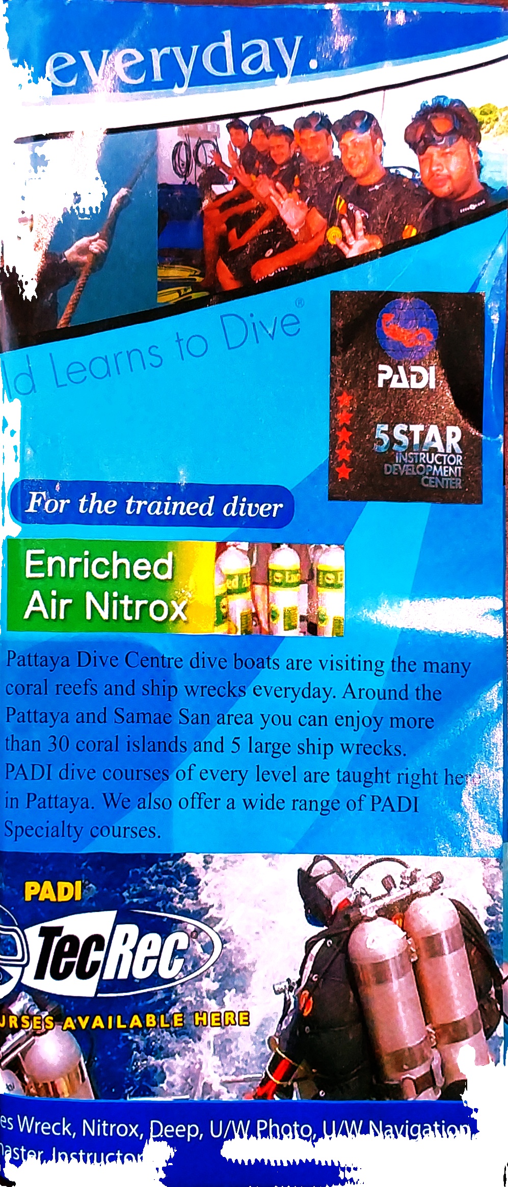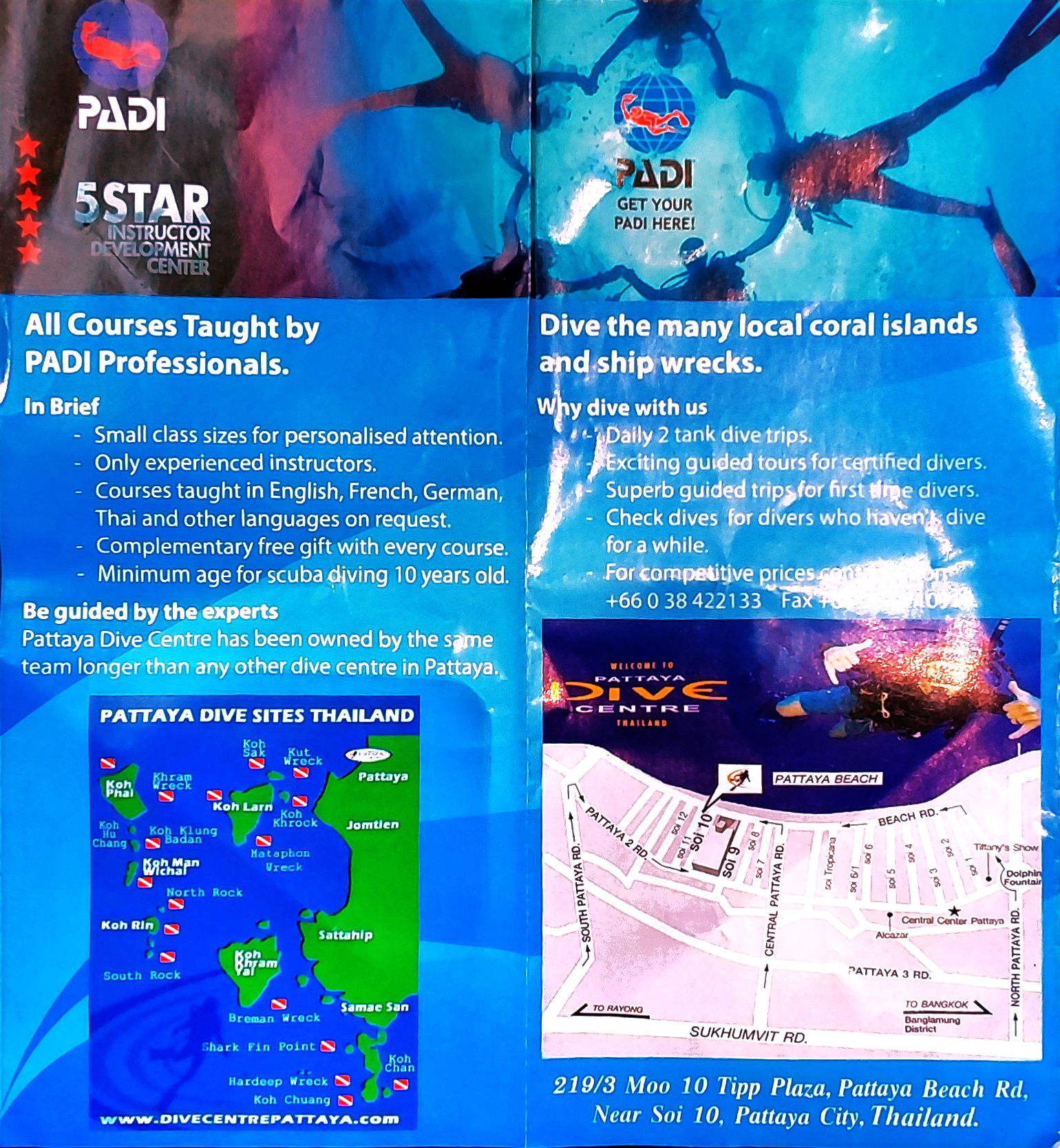 태국 파타야의 스쿠버 다이빙 & 스카이 다이빙 홍보 팜플렛