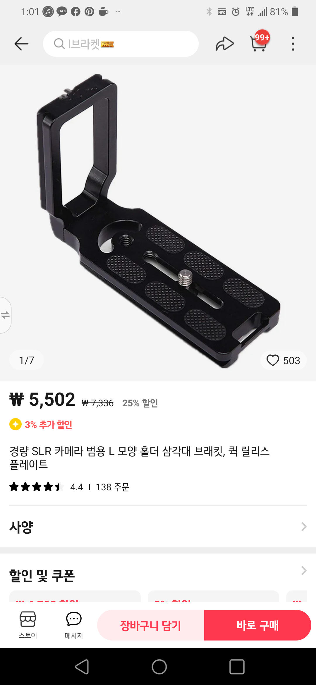알리쇼핑 : 카메라 브라킷. 가격 대비 양호