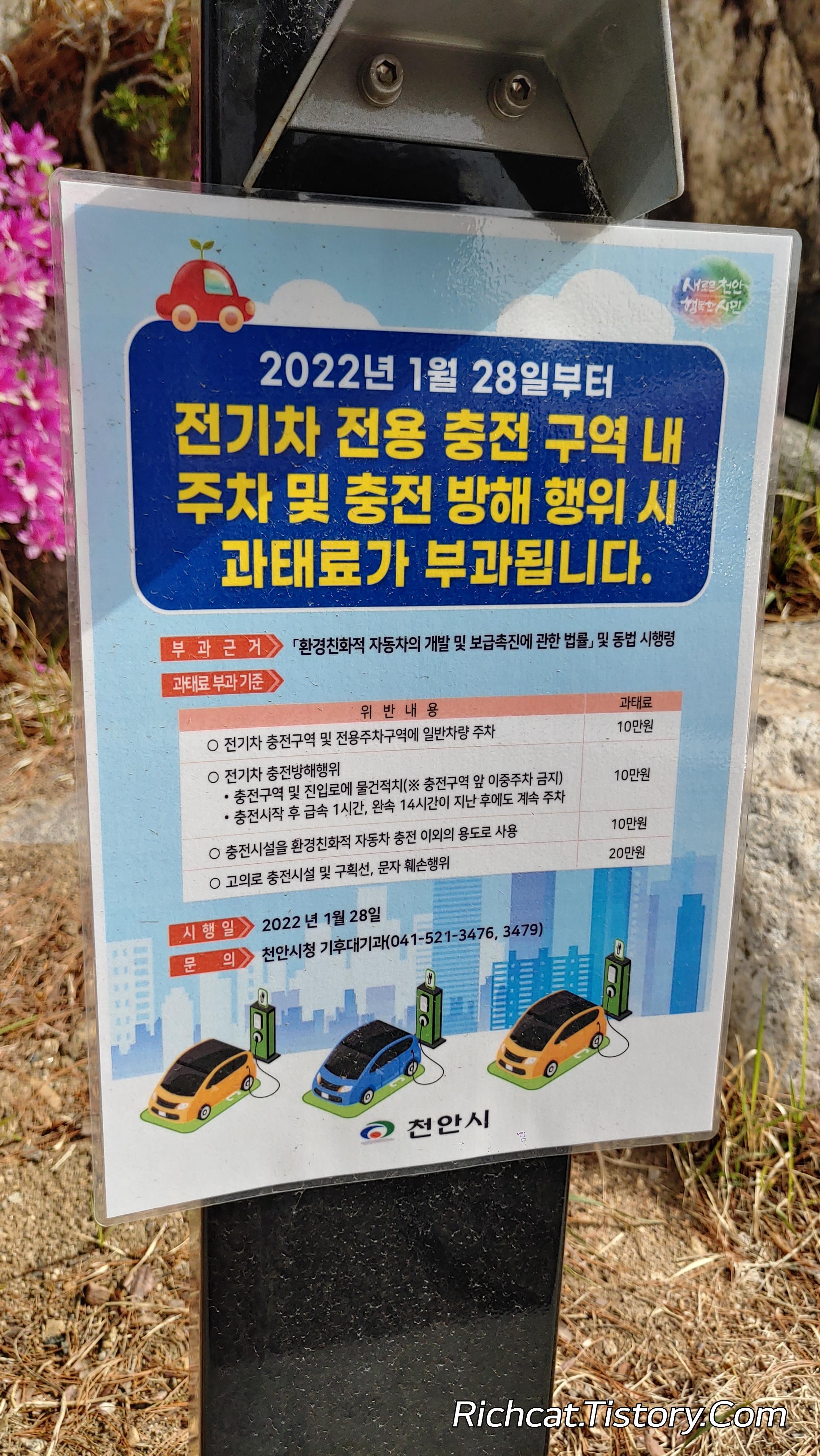 그리고 아직까지 전기차 충전 하는 공간에 엔진차를 주차를 하는 사람들이 있는데 과태료가 비싸다는 것을 인지하기 바란다