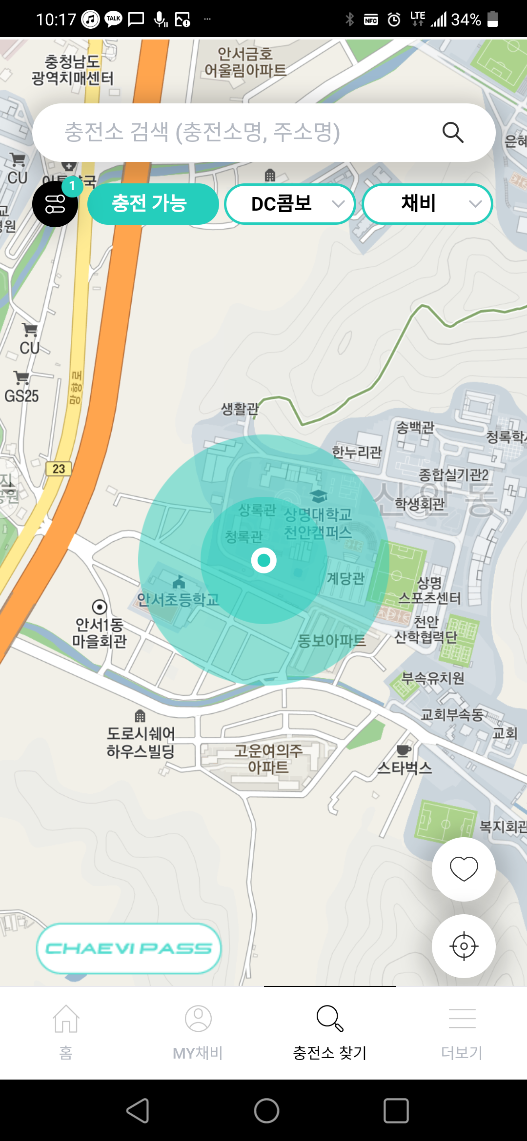 상명대학교 안에만 세 군데 충전소가 있는데 채비의 지도에서는 아무것도 보이지 않습니다..