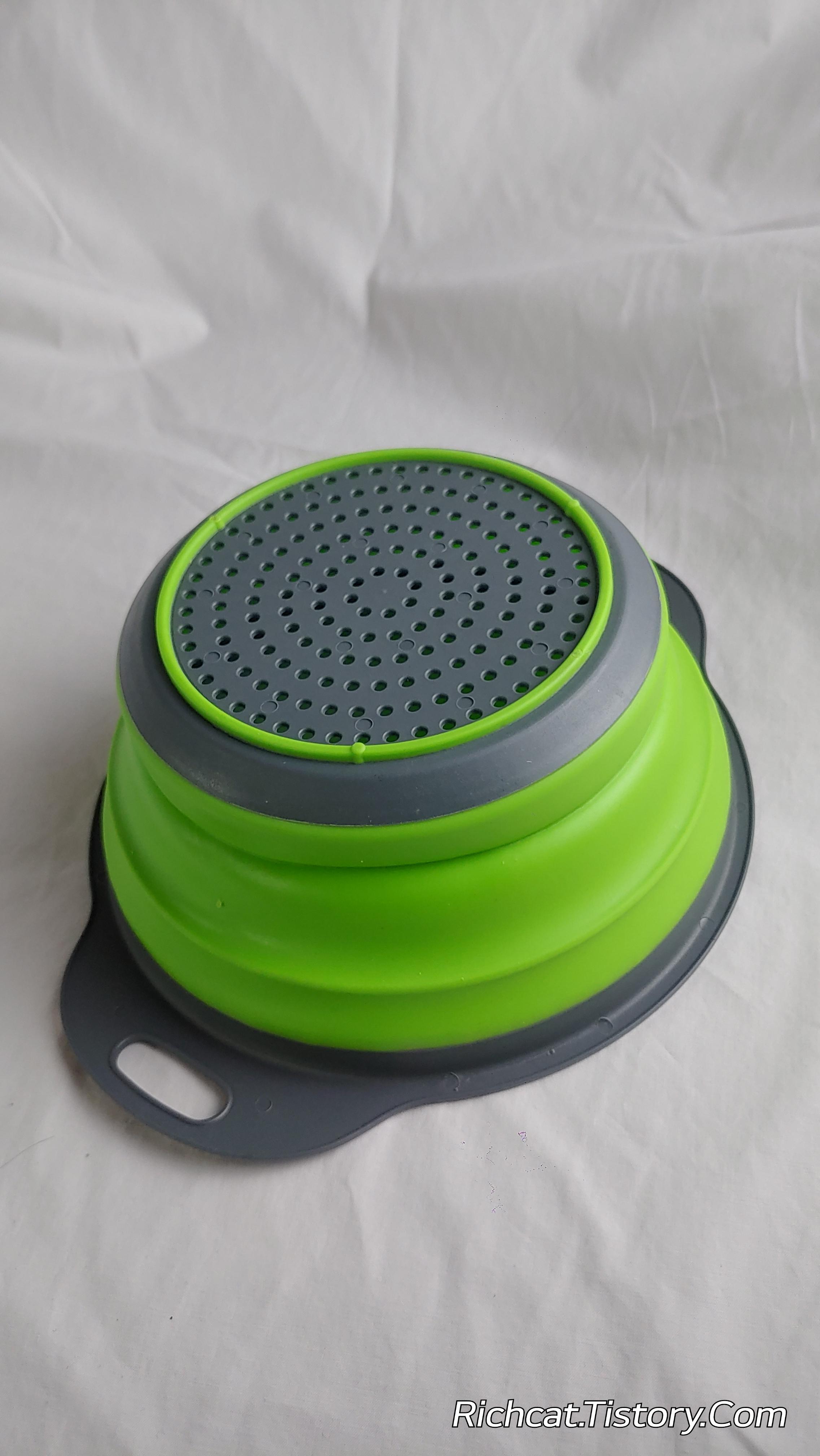 알리쇼핑 리뷰 : 캠핑용 자바라 플라스틱 실리콘 물 빼는 용 그릇. 캠핑 가서 야채 씻을 때 유용. 단 크지는 않음 어른 손바닥 크기...
