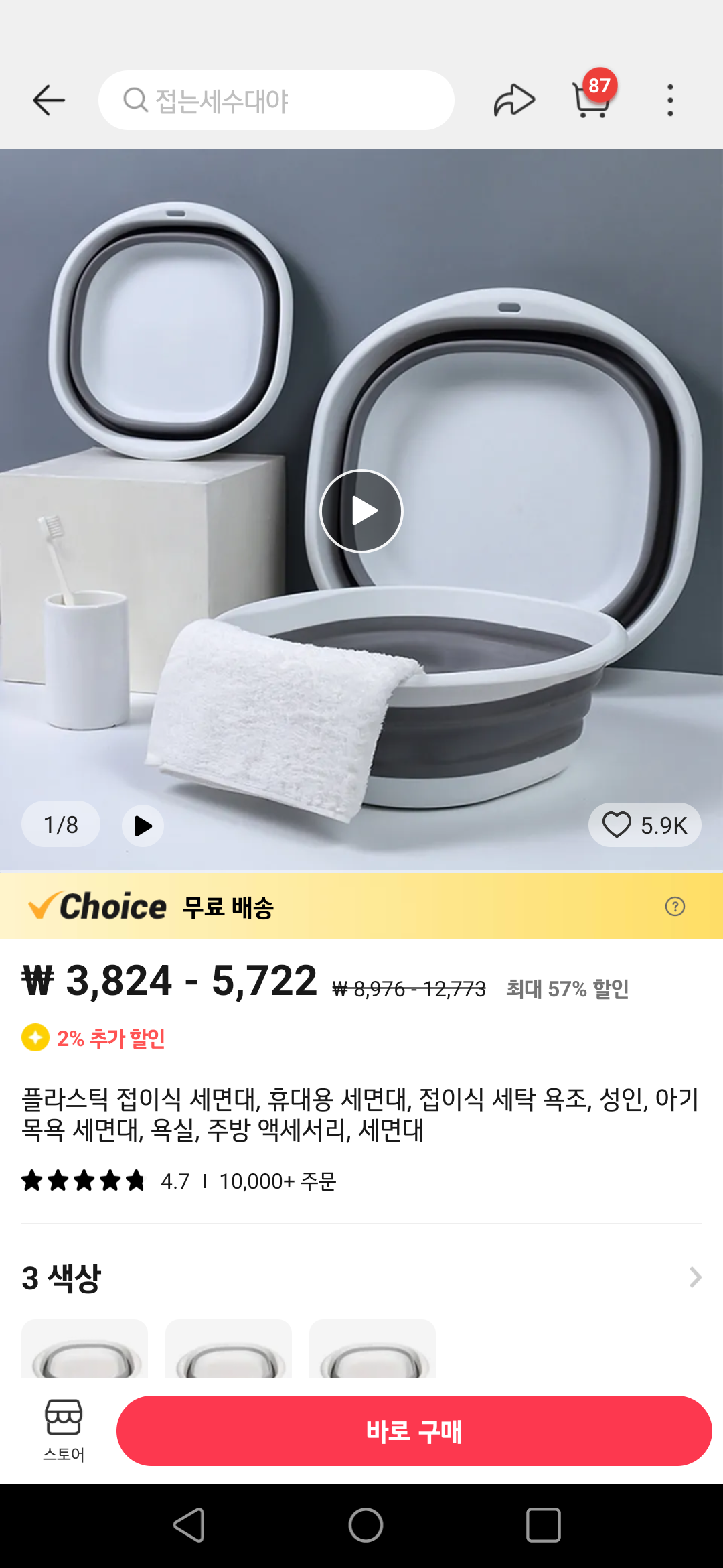 알리쇼핑 리뷰 : 접이식 세면대. 캠핑용으로 적합. 크기는 그리 크지 않음. 1.66 달러 대략 2,300원