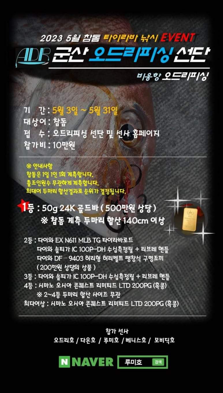 군산 오드리피싱 선단 참돔 타이라바 EVENT(5월3~31일).